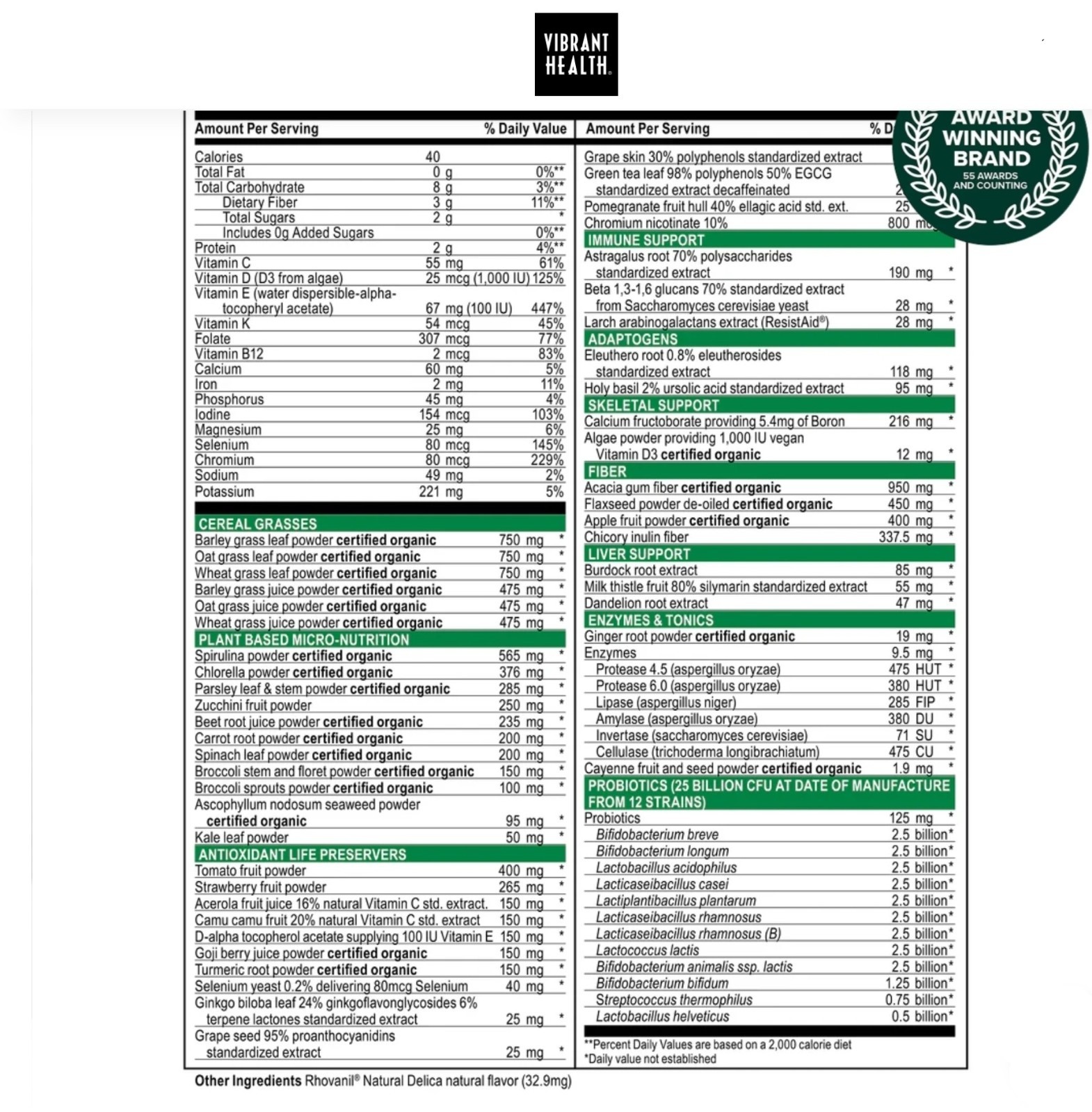 Vibrant Health Green Vibrance Plant-Based Superfood Powder 11.64oz- 30 Servings