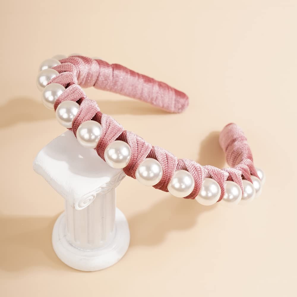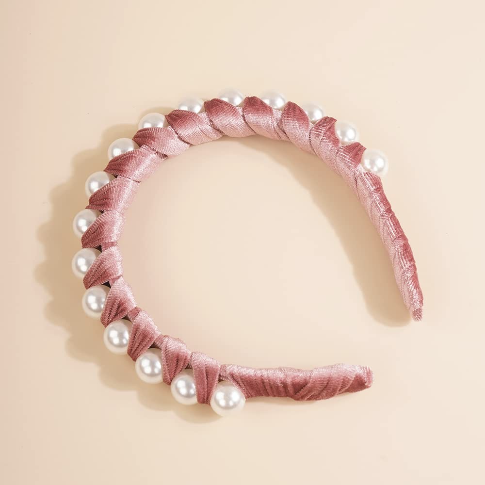 Wiwpar Pearl Headbands Velvet Hair Hoop with Pearls 1 Count Pack of 1 , Pink