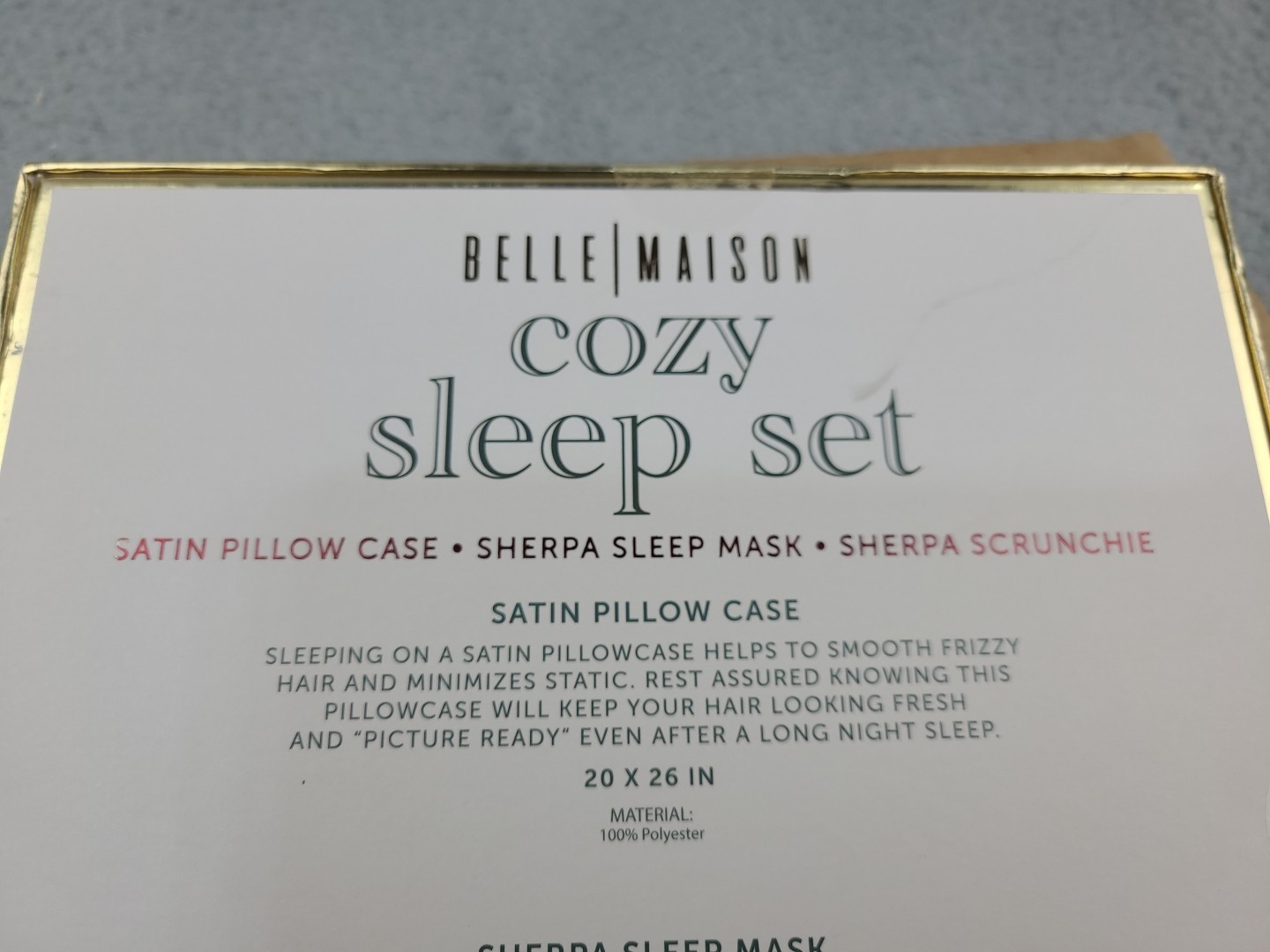 New Belle Maison Cozy Sleep Set Satin Pillow Case Sleep Mask Sherpa Scrunchie