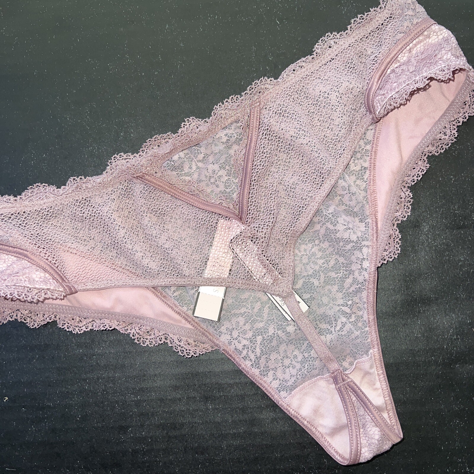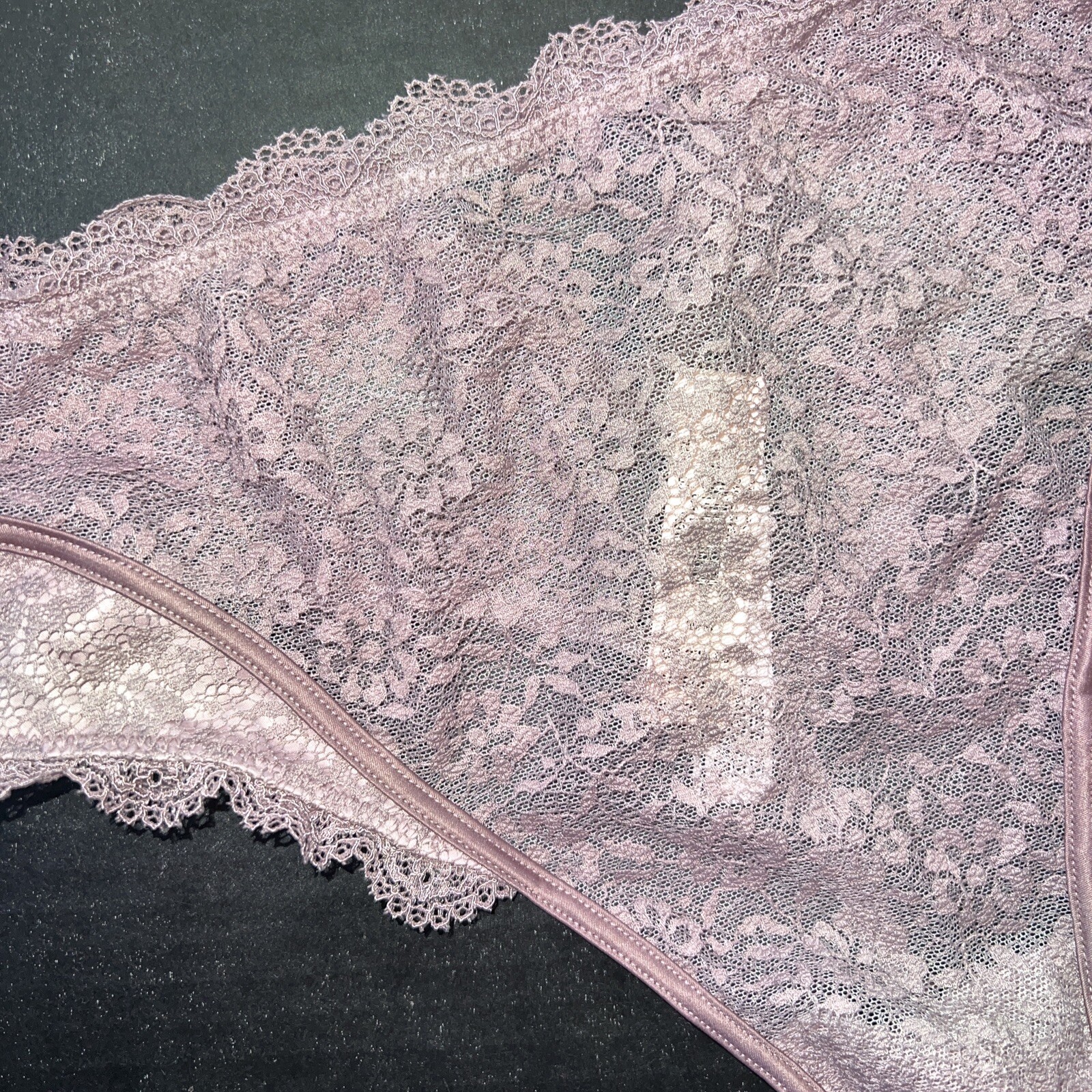 как выглядит Victorias Secret M High-waist thong MAUVE PINK TAUPE LACE SATIN DREAM ANGELS фото