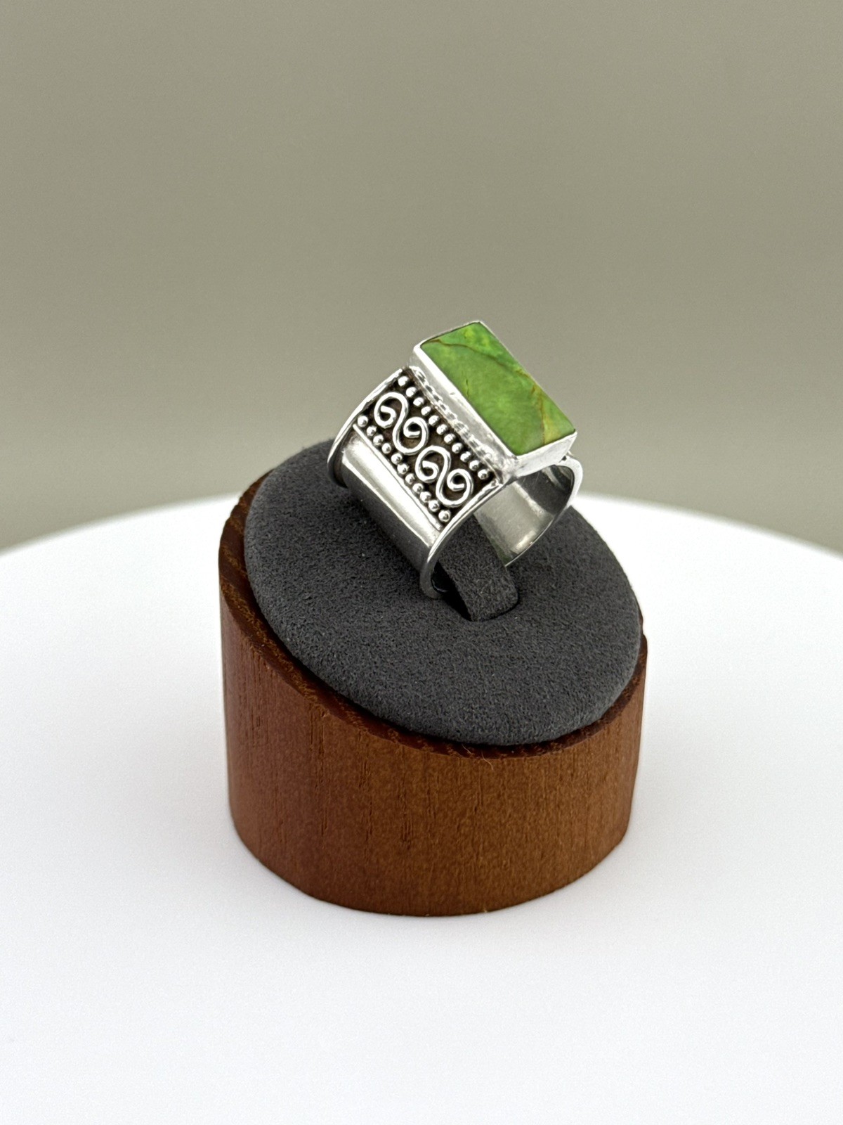 Sterling Silver Turquoise Ring Wide Band Rectangular Green Stone Size 6