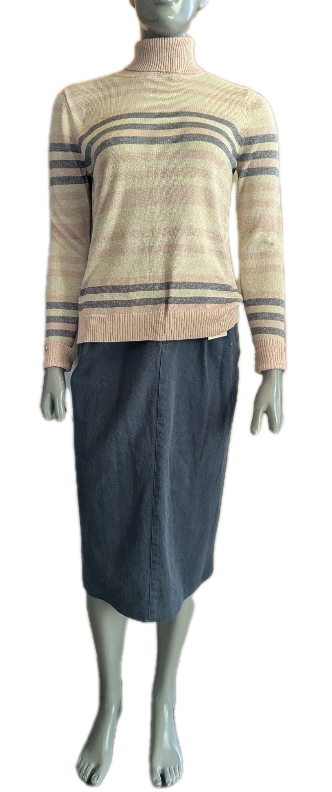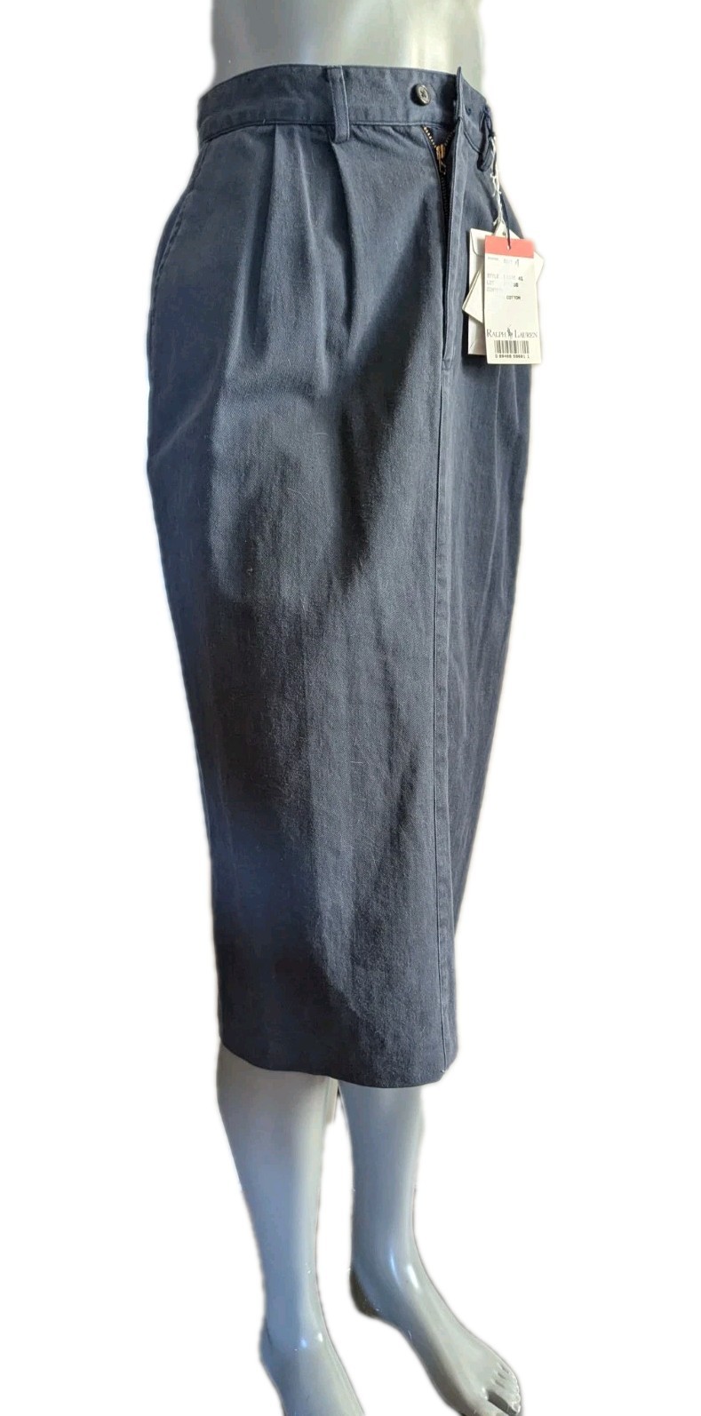 Vintage 1980-90s Ralph Lauren Navy Cotton Midi Skirt w/Pleated Front 4 NOSWT