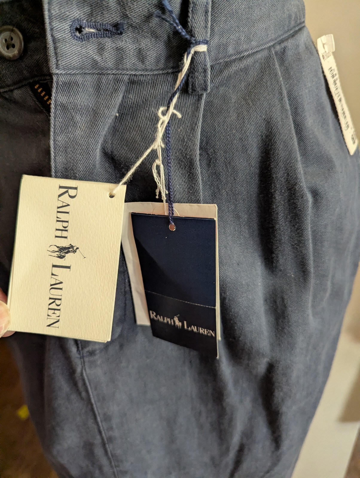 как выглядит Vintage 1980-90s Ralph Lauren Navy Cotton Midi Skirt w/Pleated Front 4 NOSWT фото