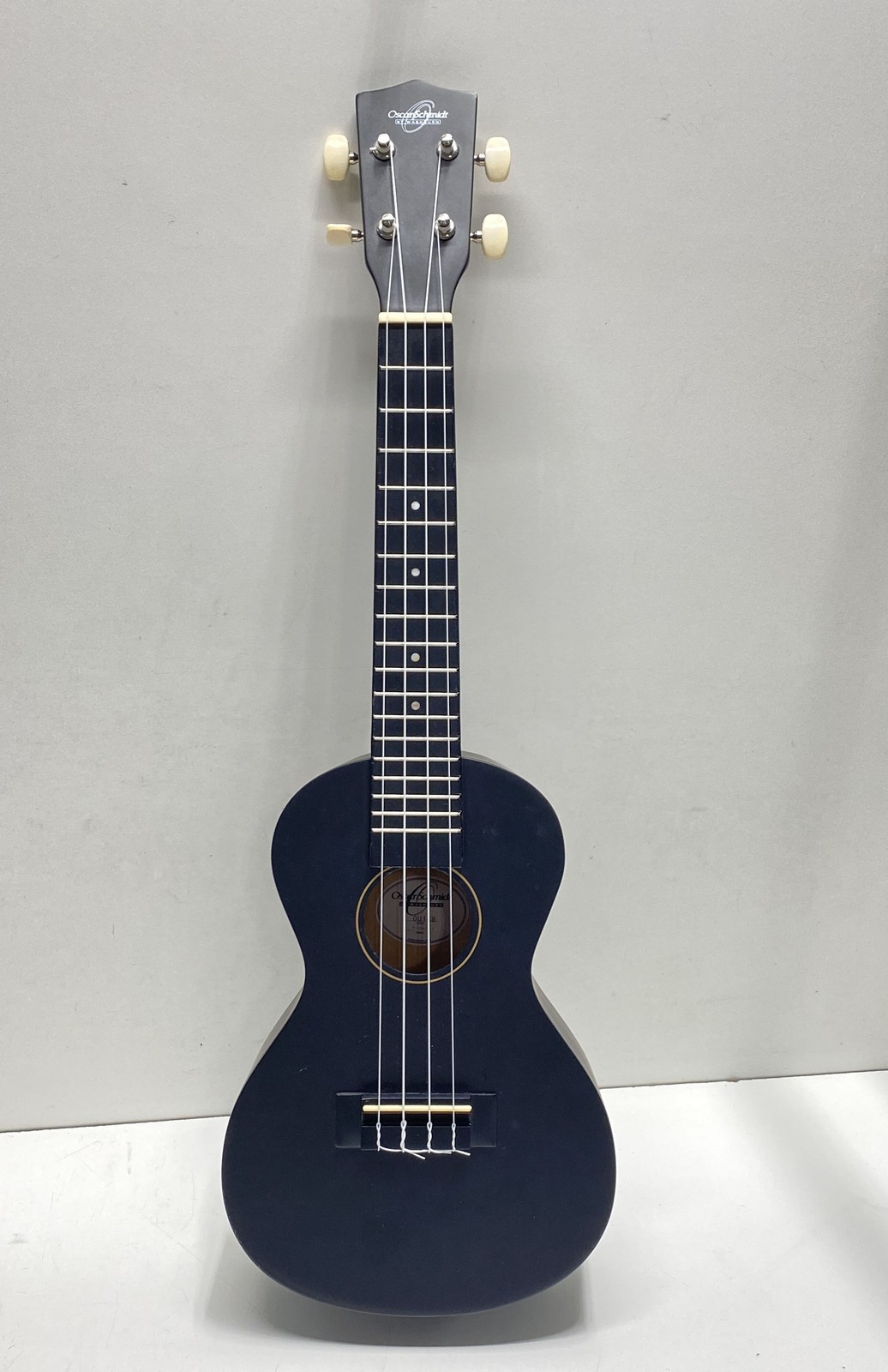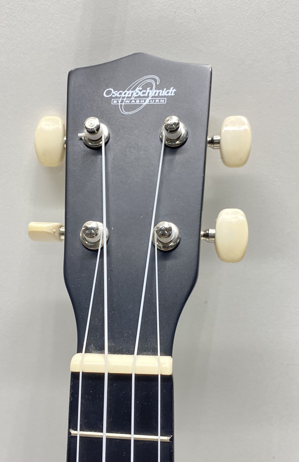 как выглядит Oscar Schmidt Black Soprano Ukulele With Hawaiian Case Good фото
