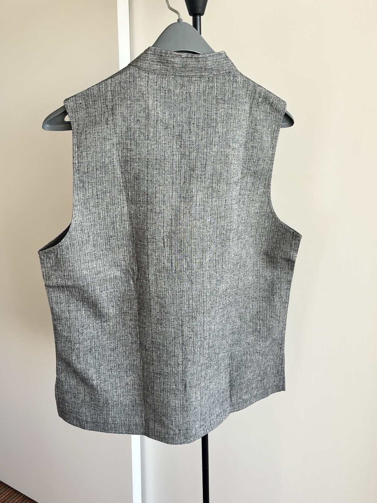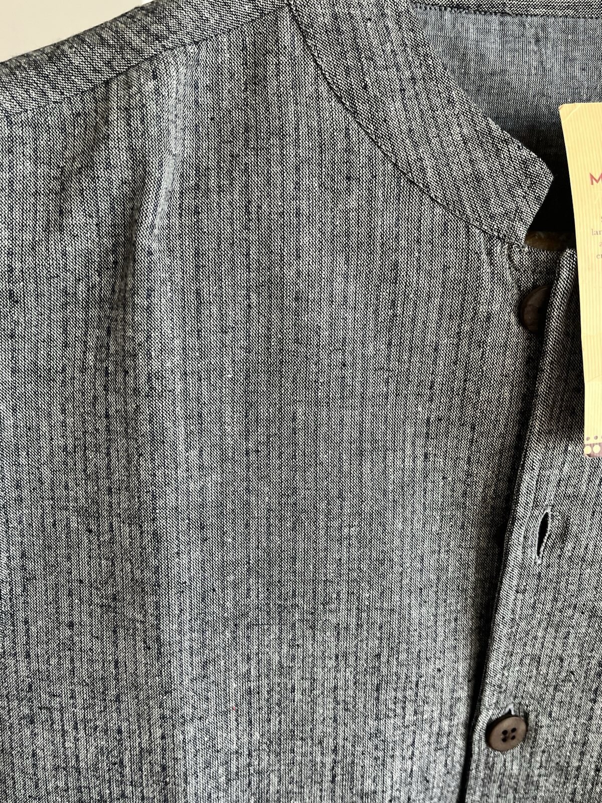 как выглядит NWT Fabindia Men Sleeveless Modi Jacket Vest Nehru Collar Woven Cotton Gray Med фото