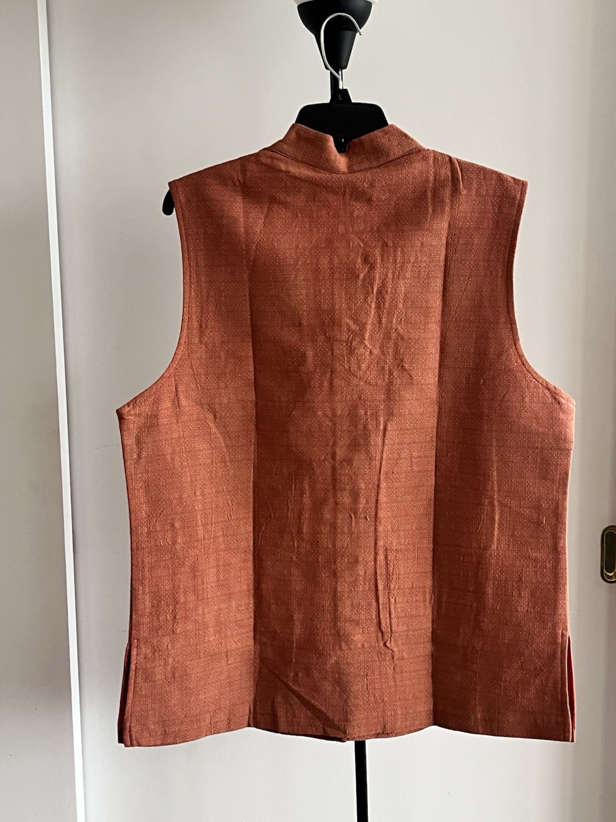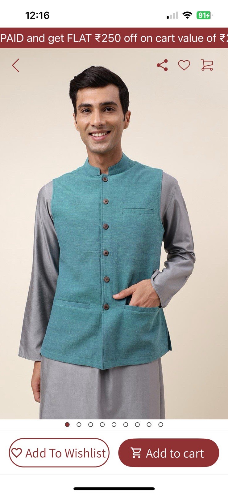 как выглядит NWT Fabindia Men Sleeveless Modi Jacket Vest Nehru Collar Woven Cotton Teal Blue фото
