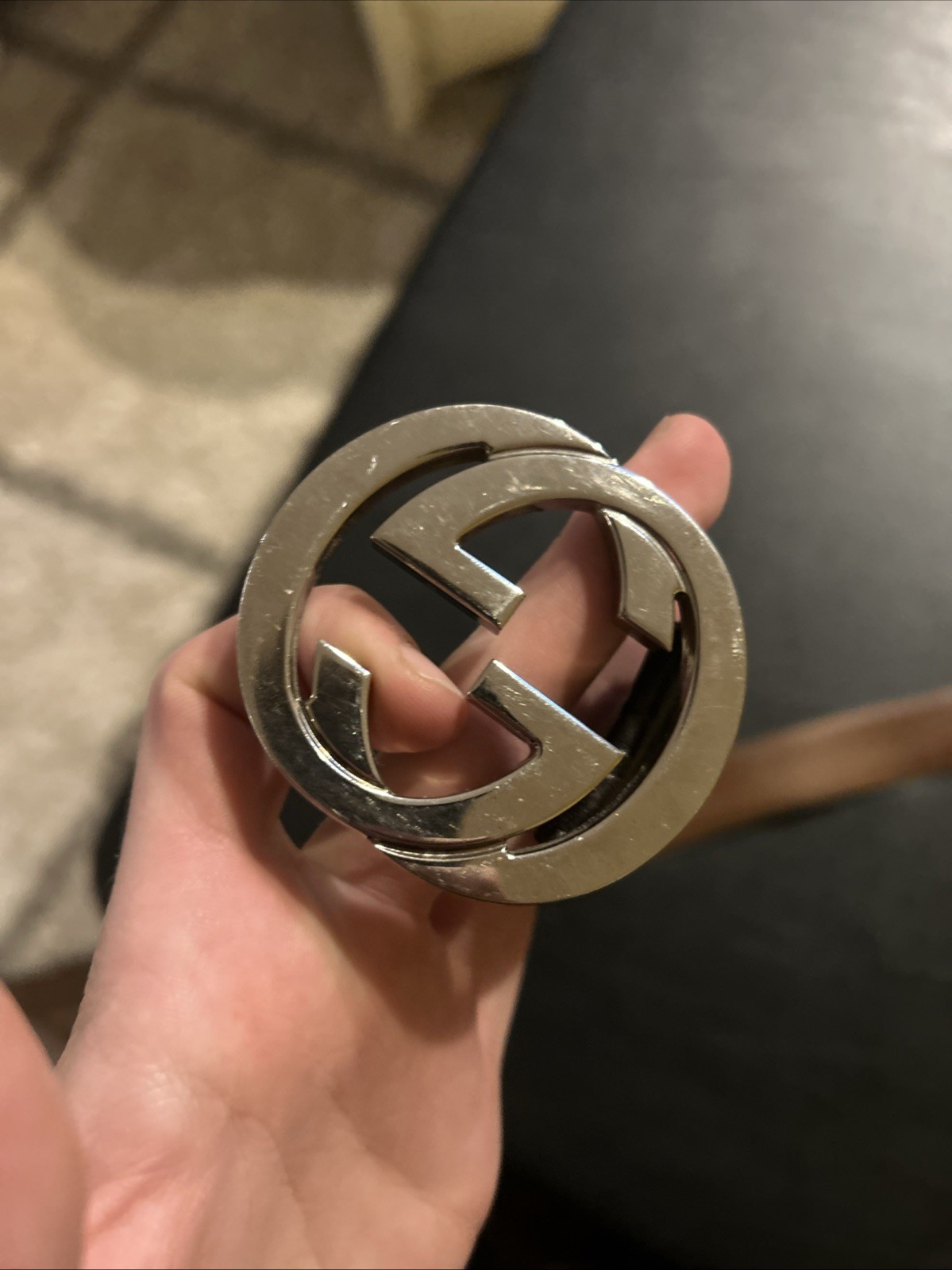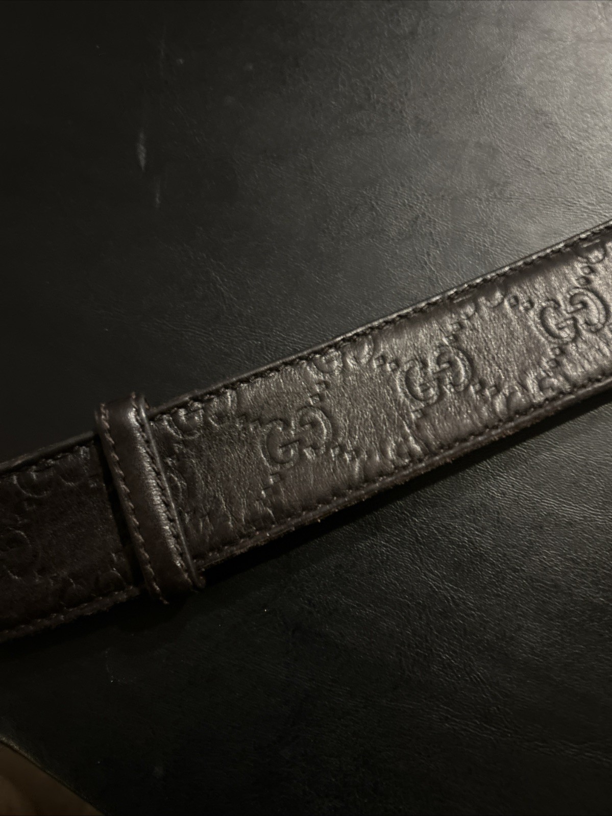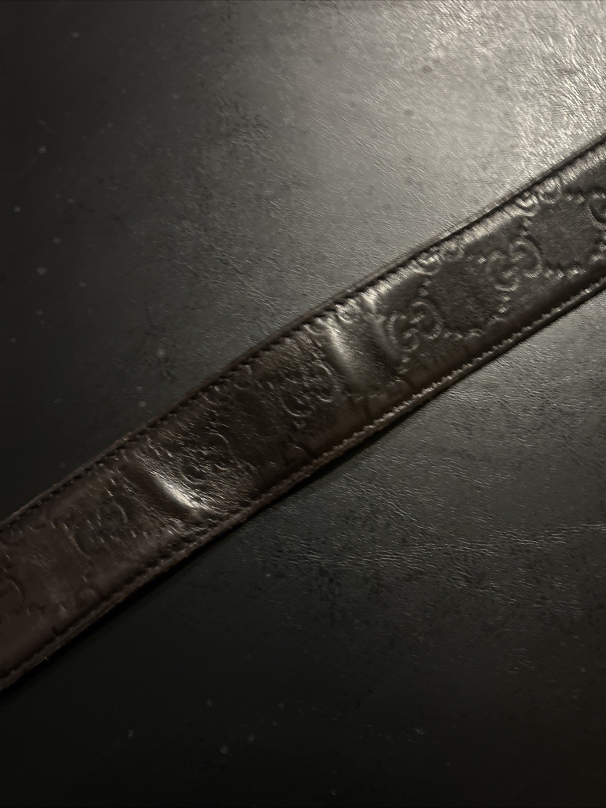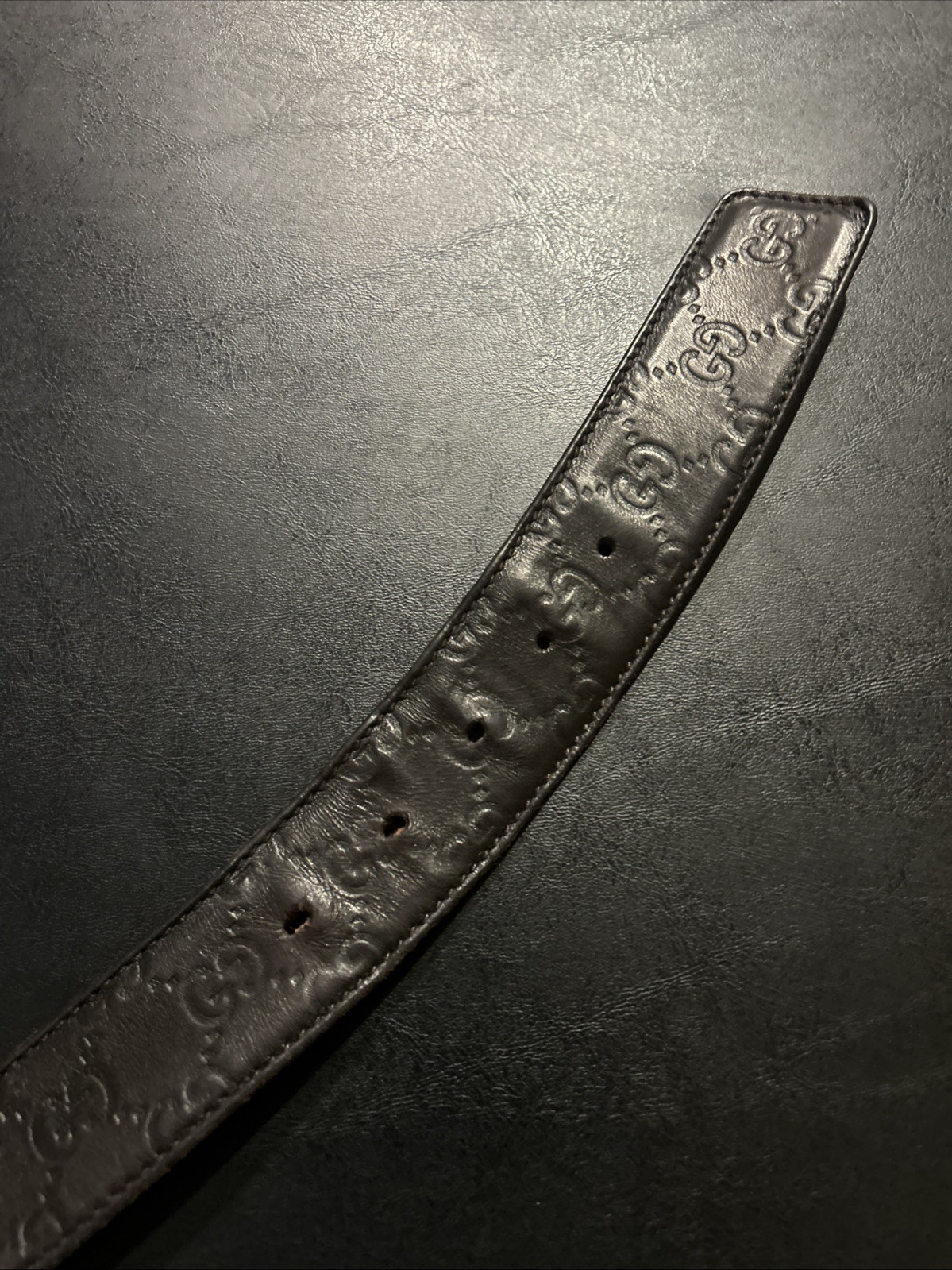 как выглядит Gucci Belt Silver GG Chrome Buckle Authentic Black Leather Size 46 115 Cm фото