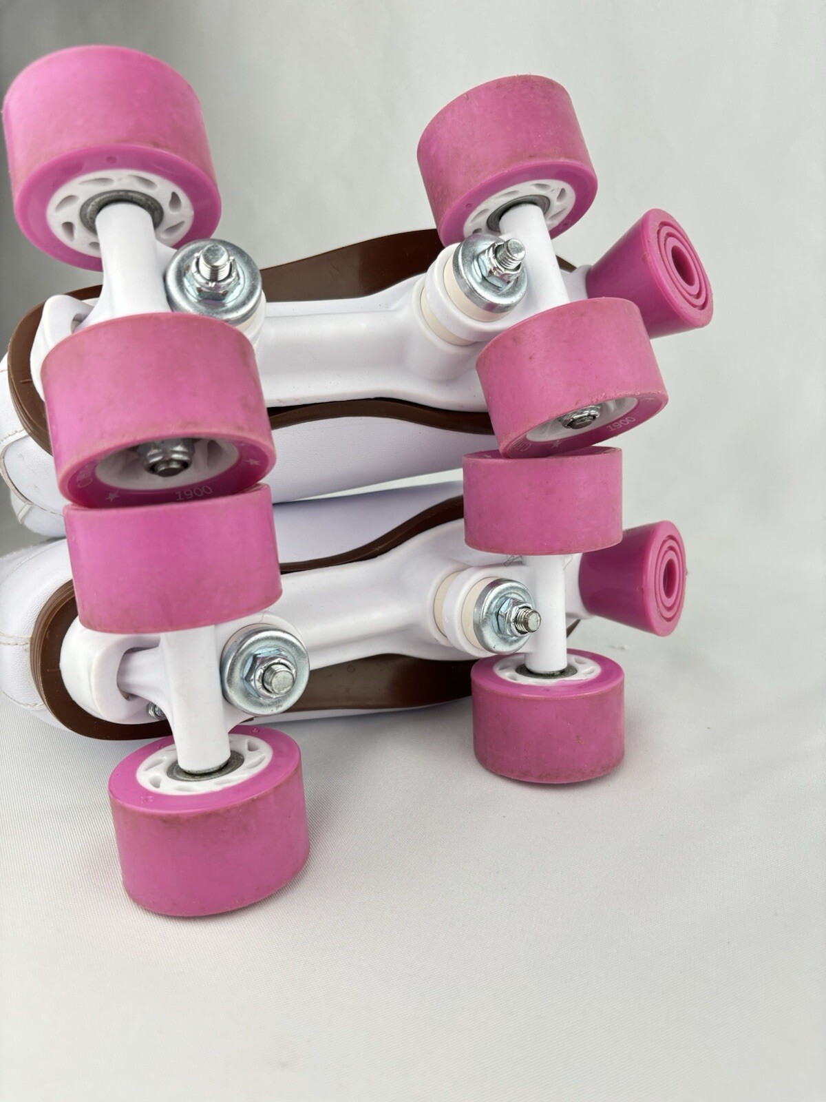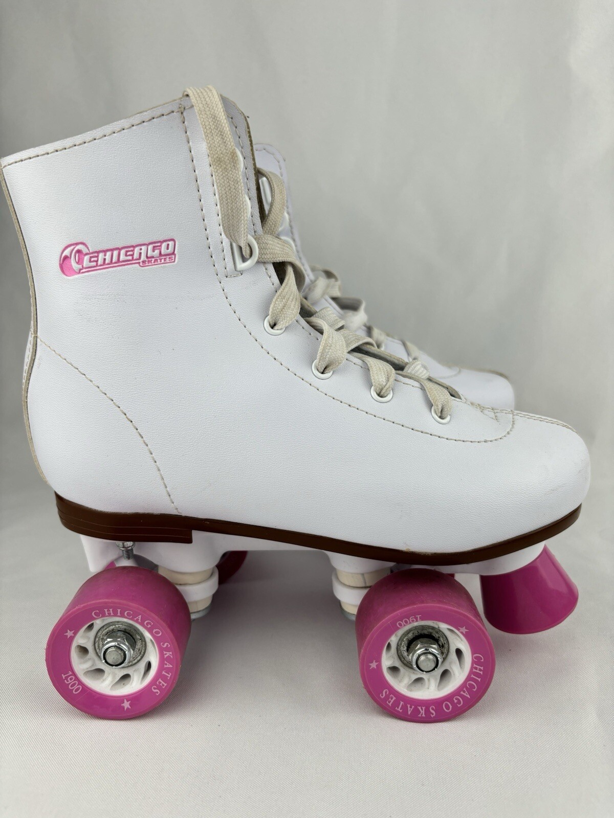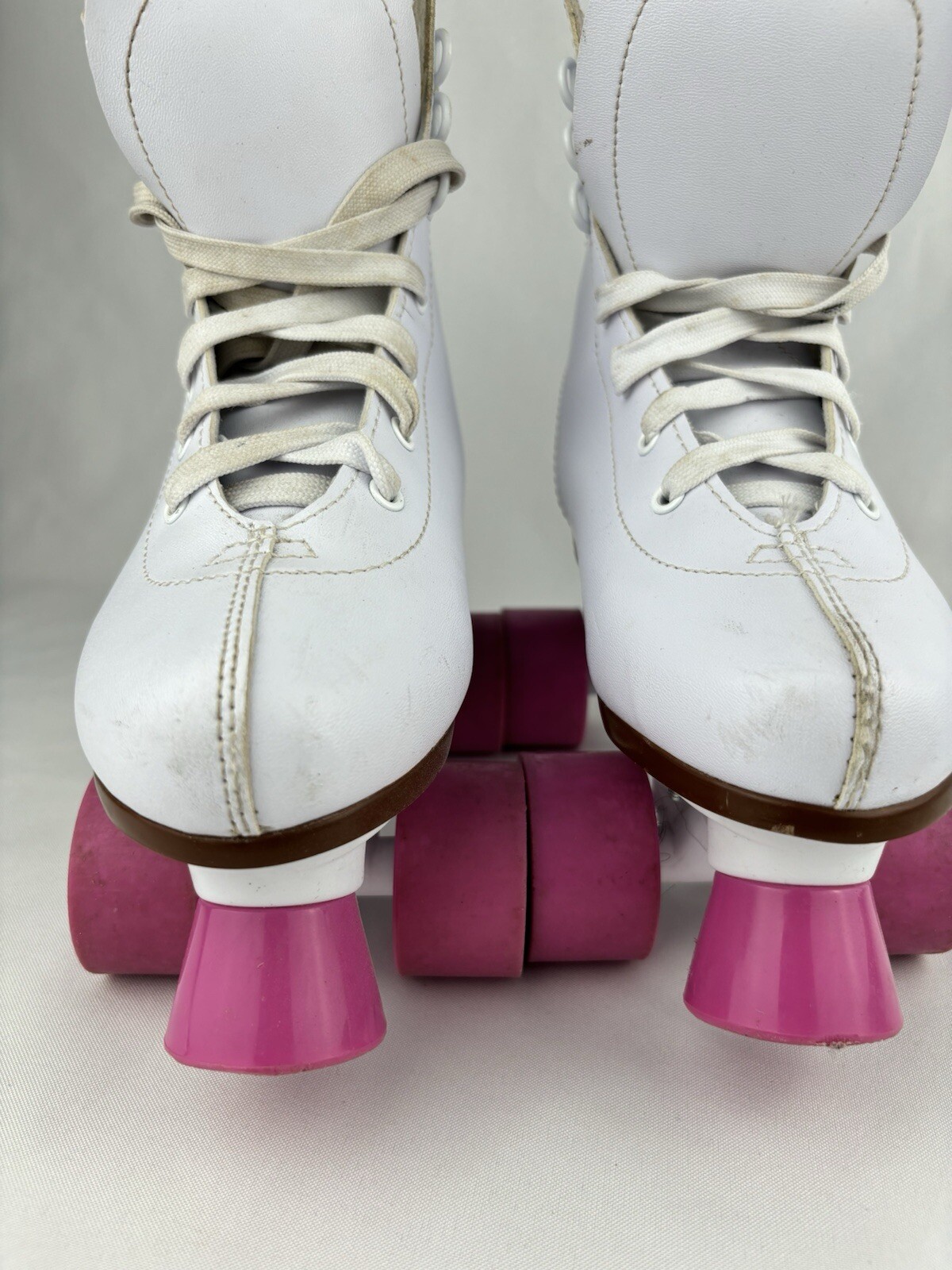 Chicago Quad Roller Skates Kids Size 4 White Leather Pink Wheels Stopper