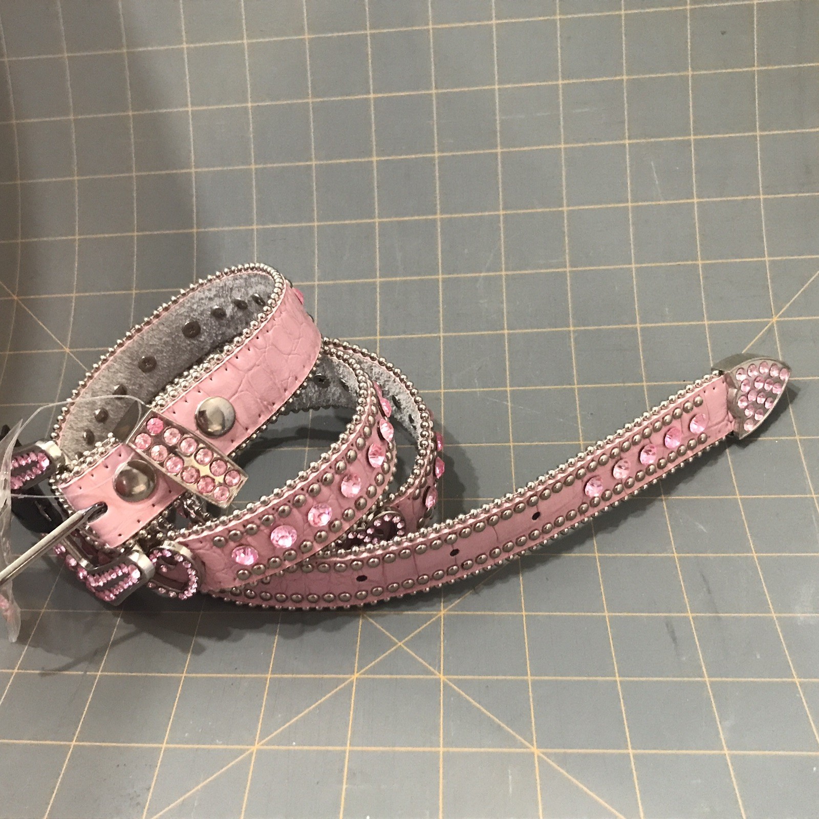 WOMEN'S PINK HEART RHINESTONE WESTERN BLING LEATHER BELT 43 ML