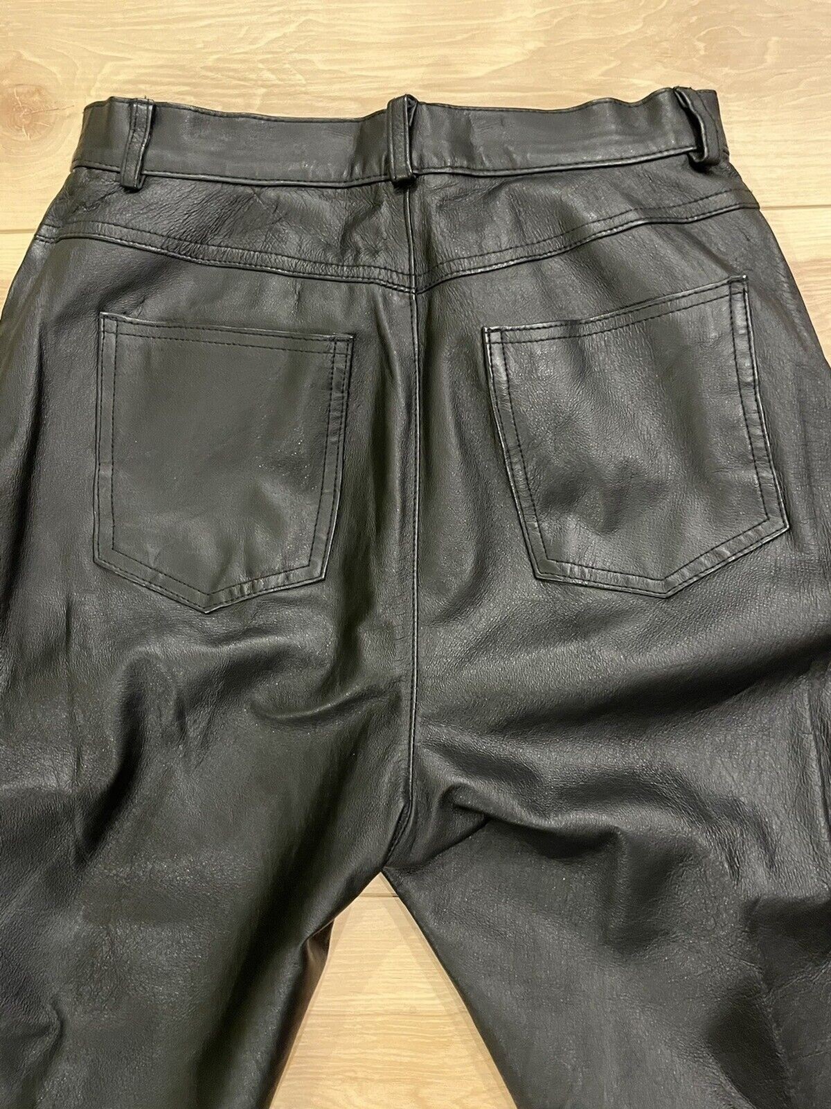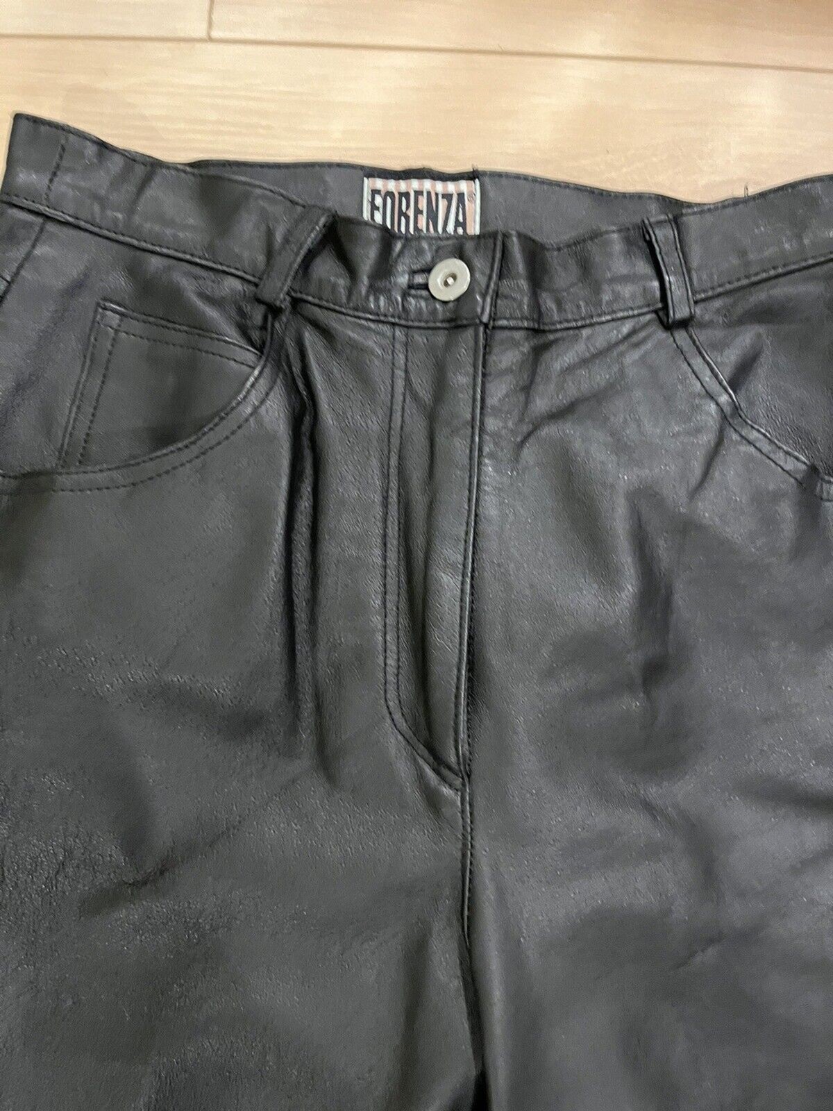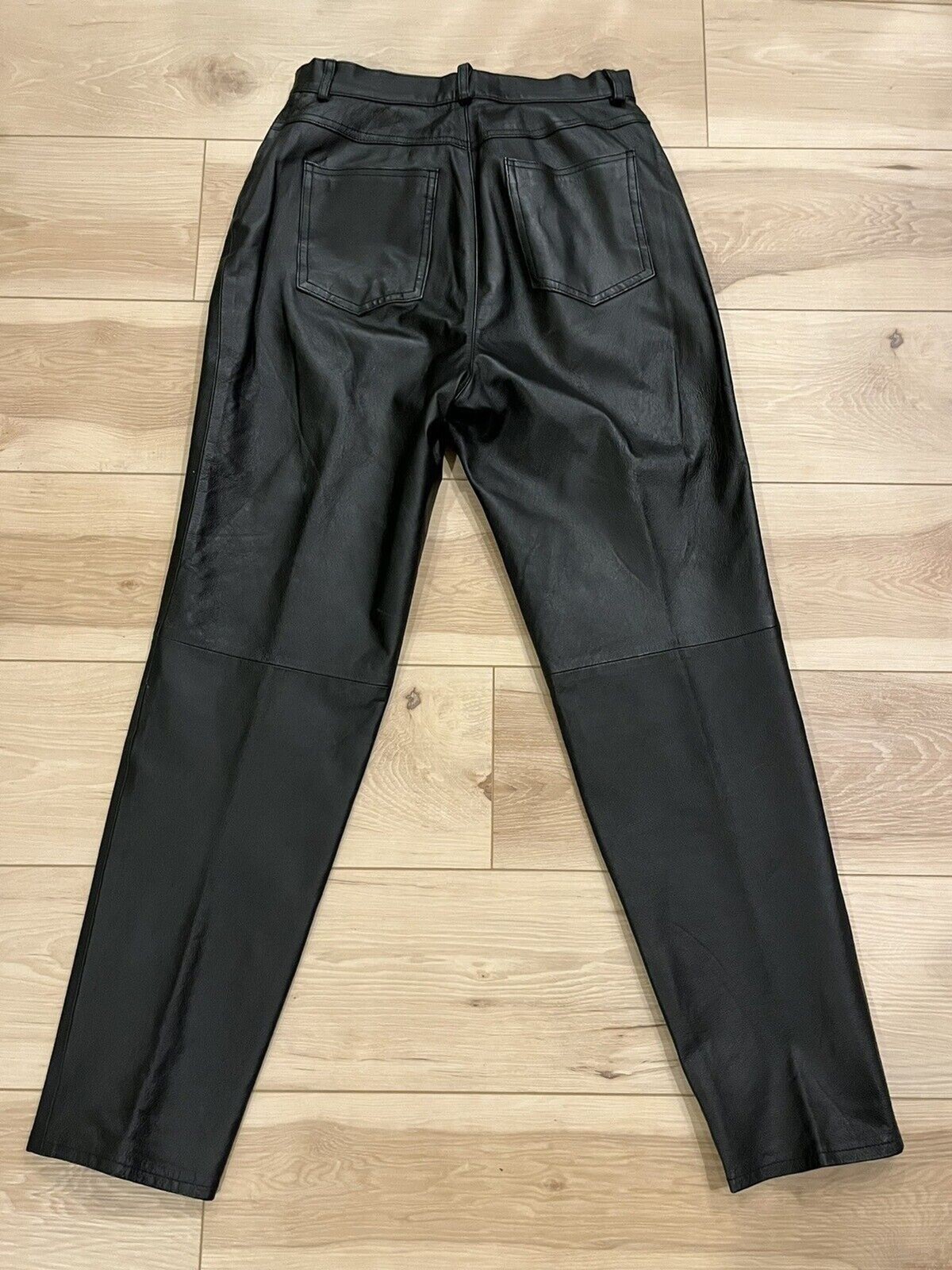 как выглядит FORENZA Sz 10 28" x28" Vintage LEATHER STRAIGHT LEG PANTS SIZE Black Lined фото