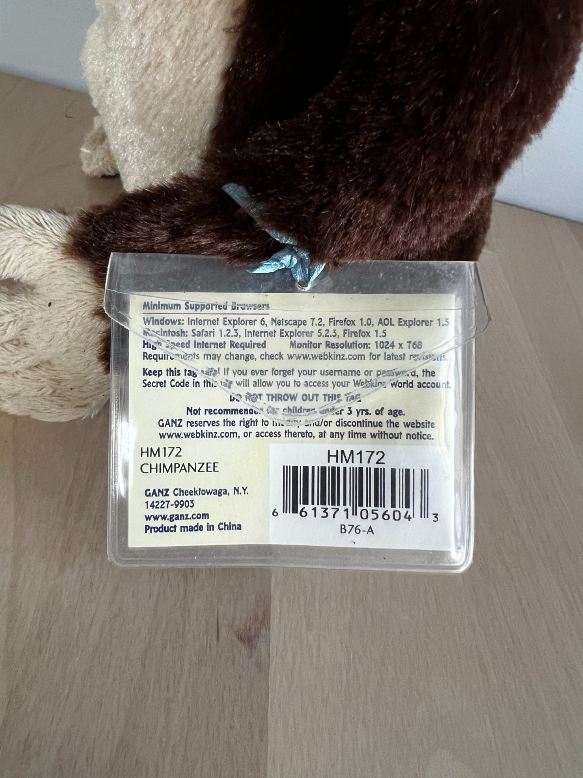 Webkinz Chimpanzee HM172 With Sealed Unused Code Attached To Plush