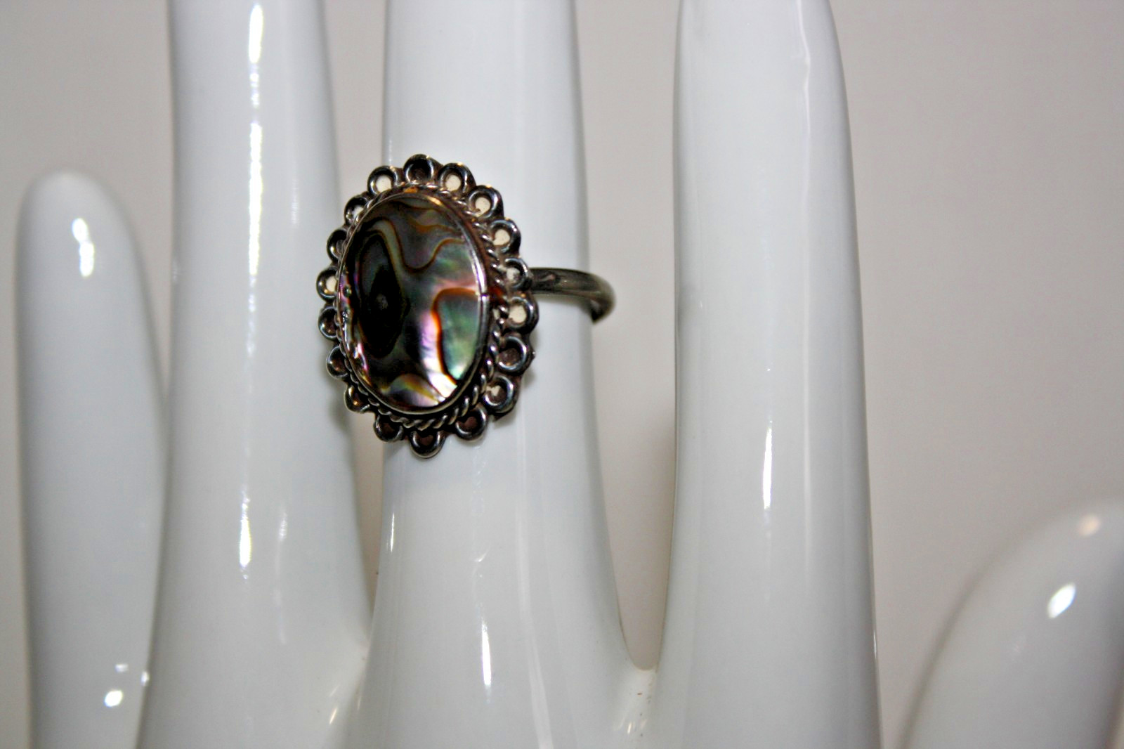 Vintage MEXICO STERLING Silver Abalone 4 gr Ring Sz 6.25 Signed