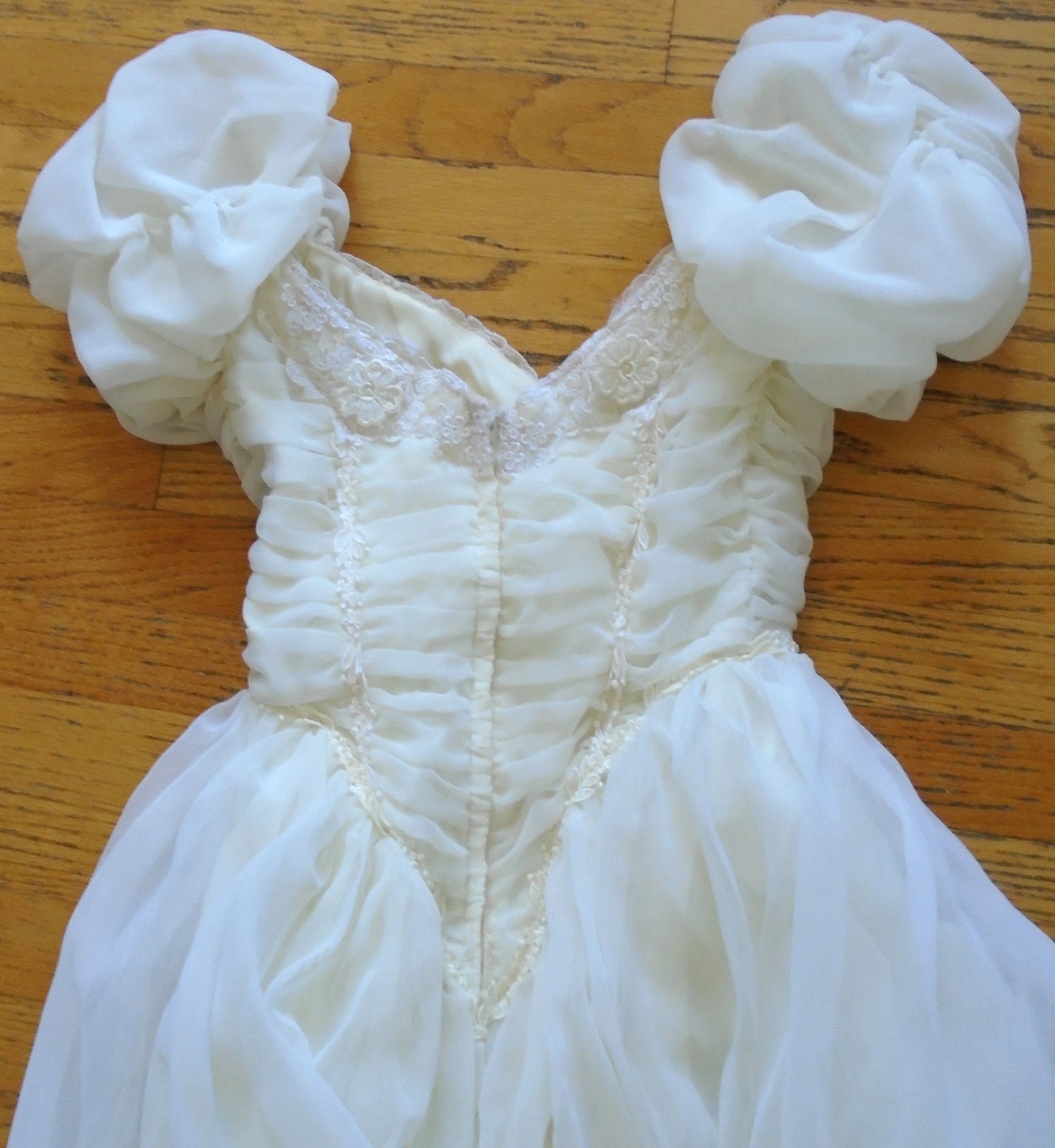 как выглядит Wedding Dress / Vintage / Ivory / with a Train / Beaded / Ruched / Small фото