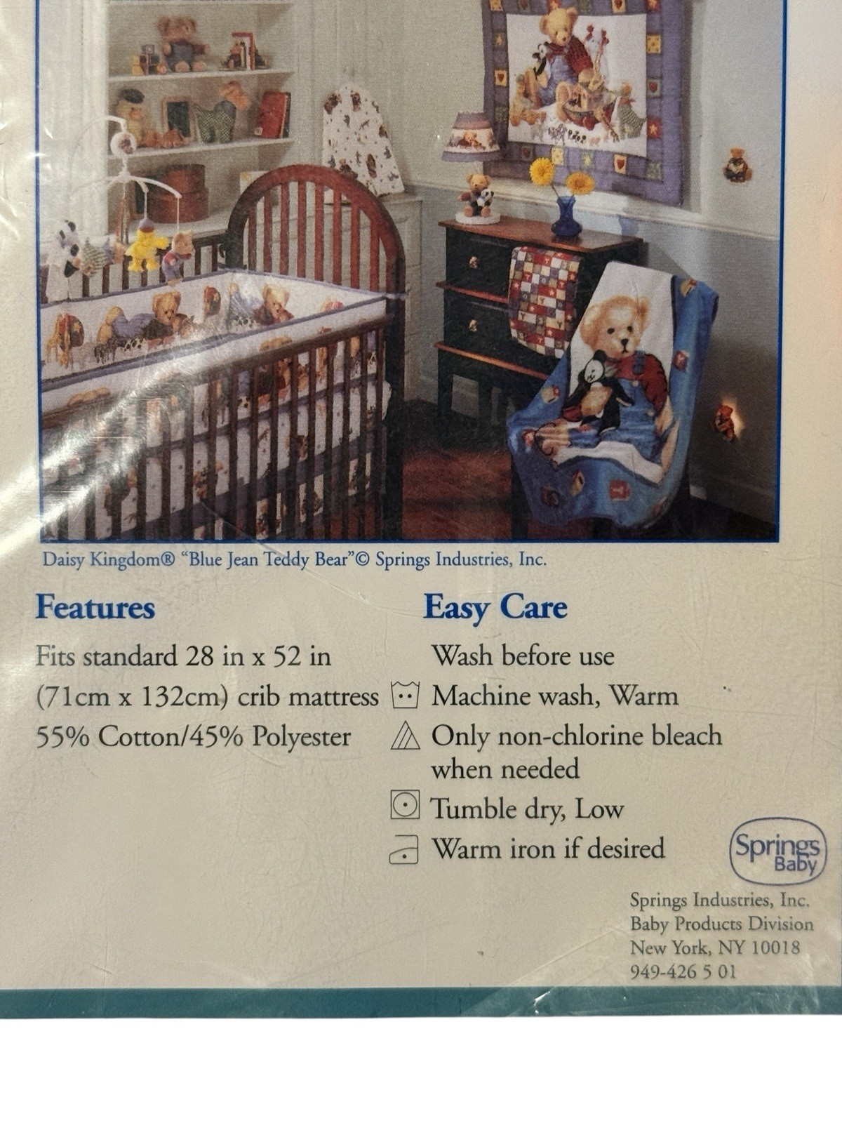 как выглядит Vtg Springmaid Blue Jean Teddy Bear Fitted Crib Sheet New in Packaged Sealed NOS фото