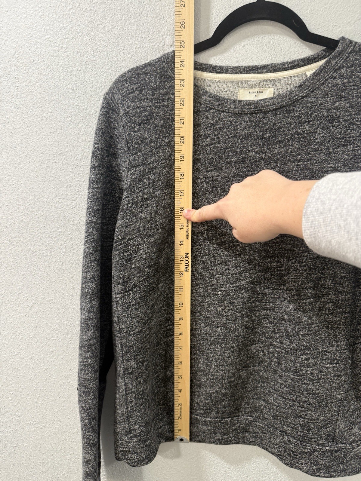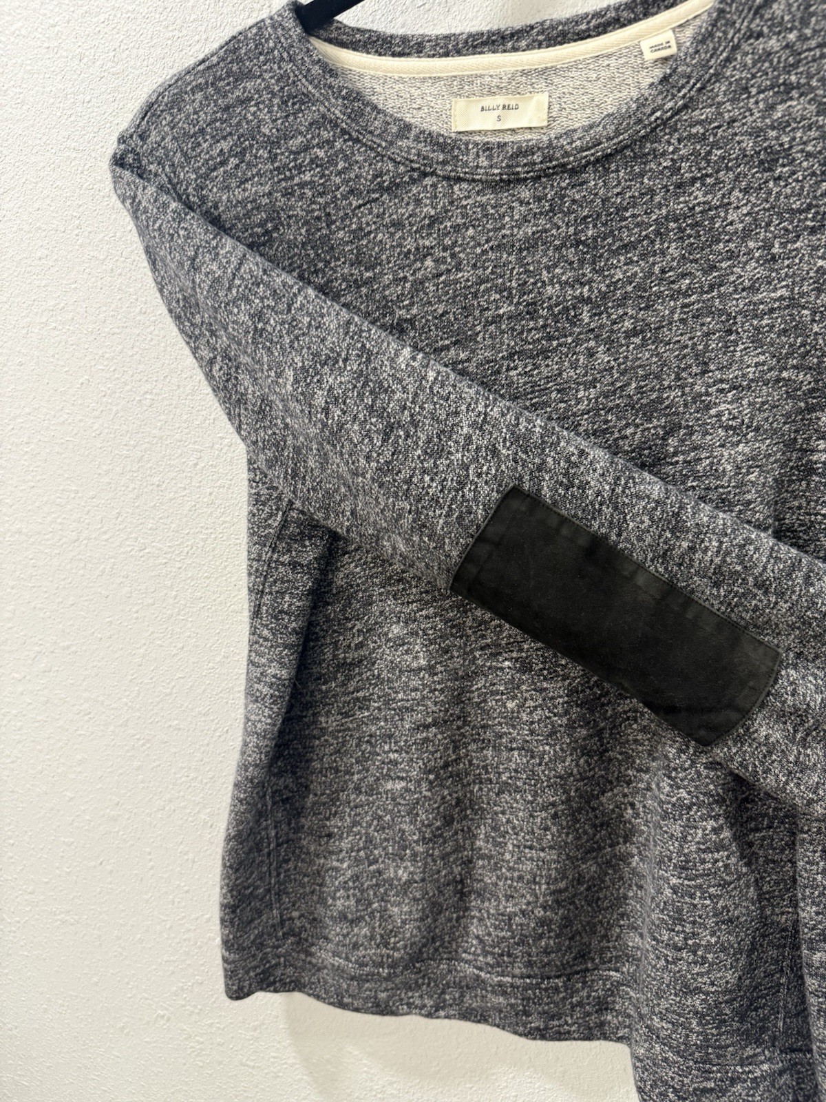 как выглядит BILLY REID Men s Crewneck Sweatshirt Elbow Leather Patch Size Small Heather Gray фото