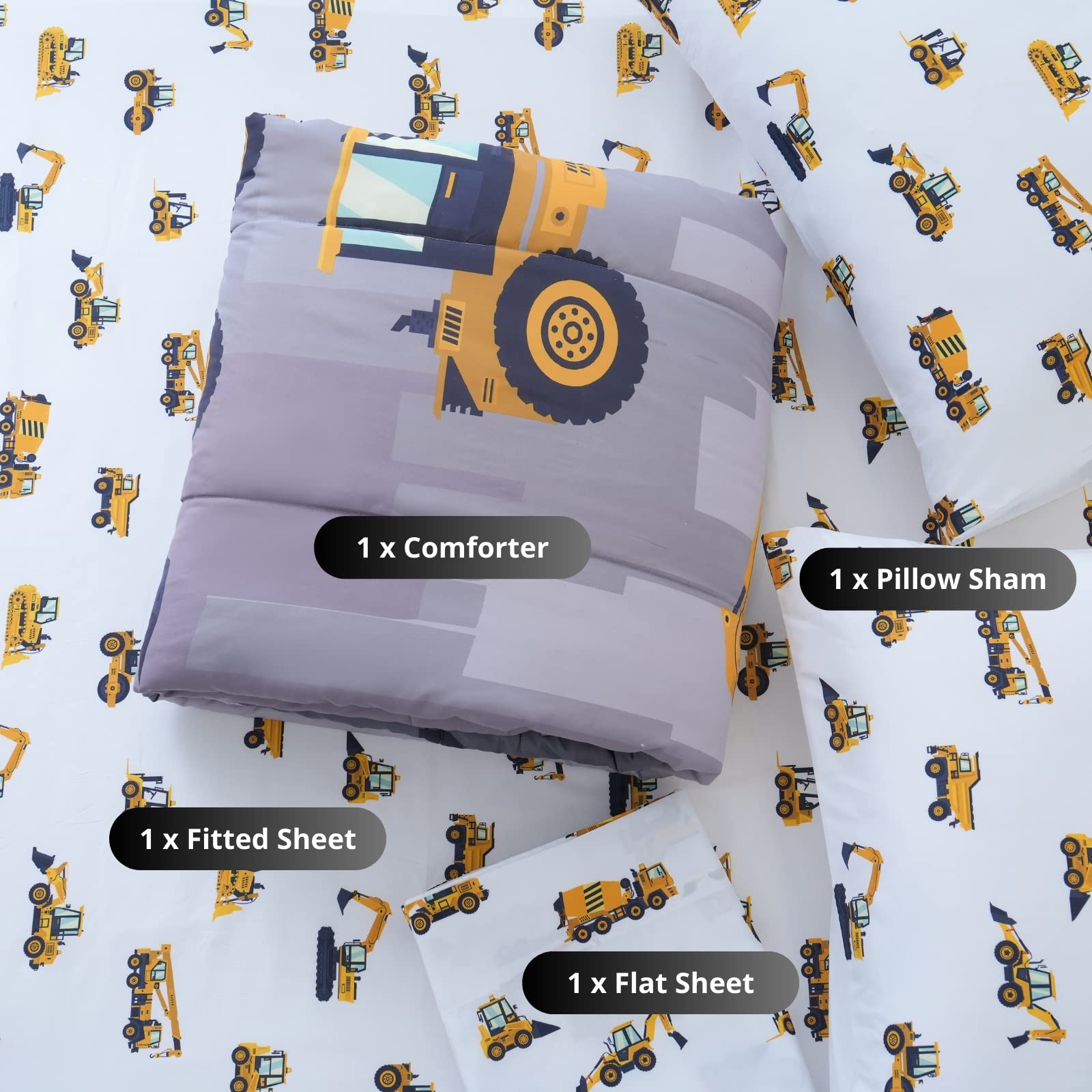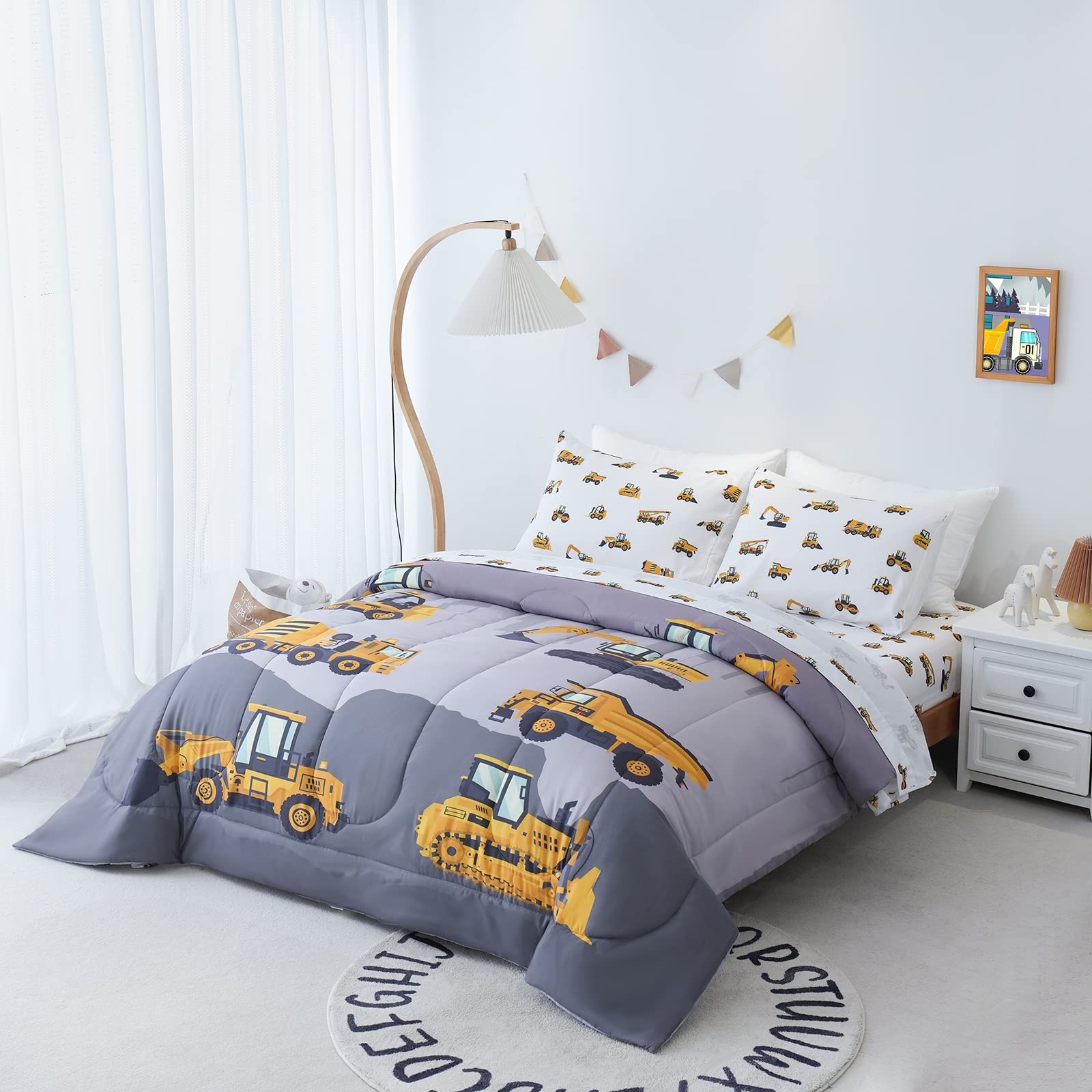 Cokouchyi Twin Size Comforter Set for Boys, 4-Piece Bed in a Twin, Truck Cars