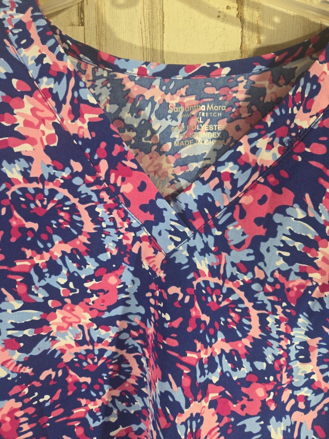как выглядит Samantha Mara Scrub Top XL Womens V-Neck Stretch Patterned Multicolor Pockets фото