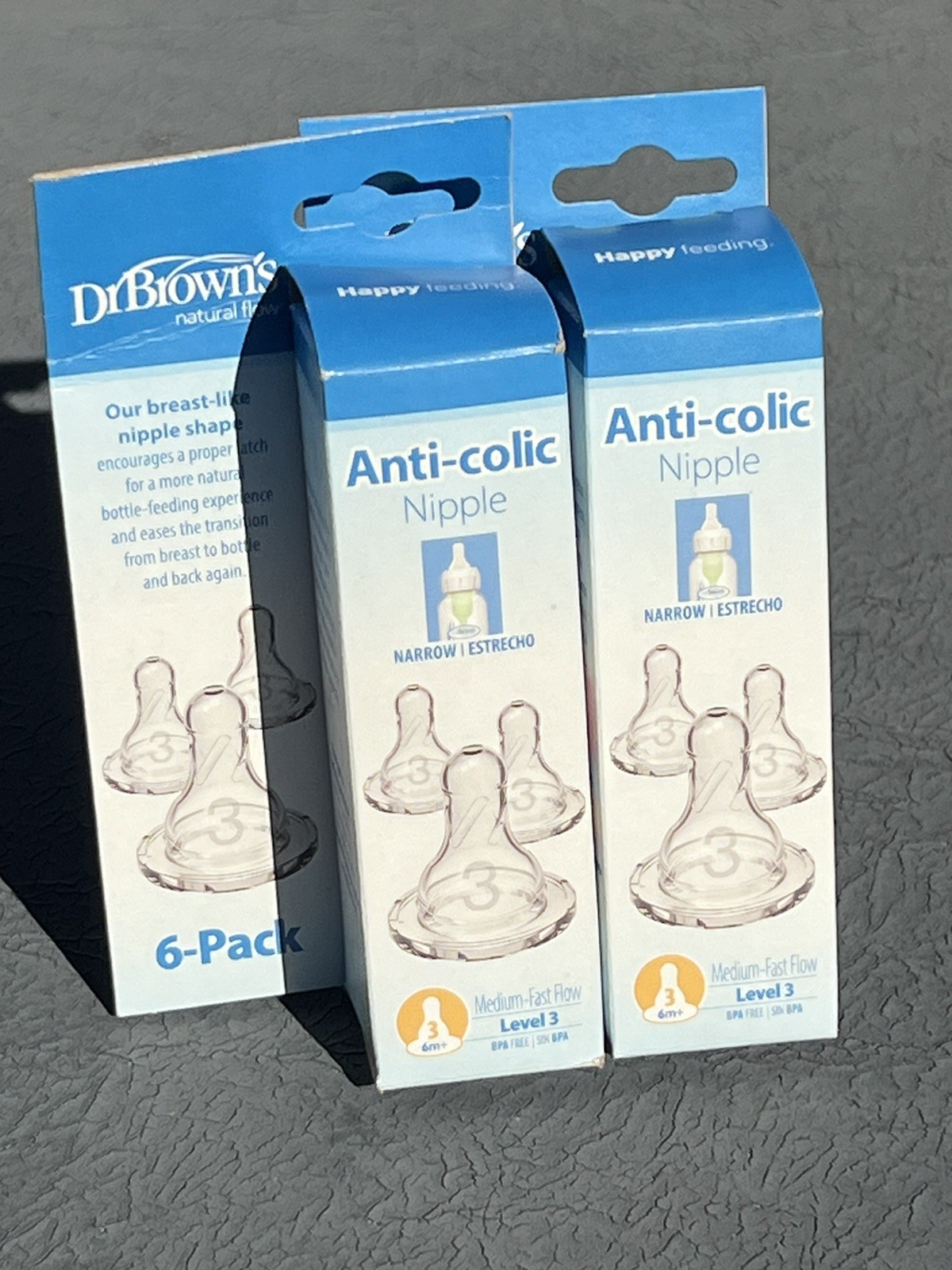 2-6 Pk Dr Brown's Anti-colic Nipple Narrow Level 3 Med-fast Flow You Get 12