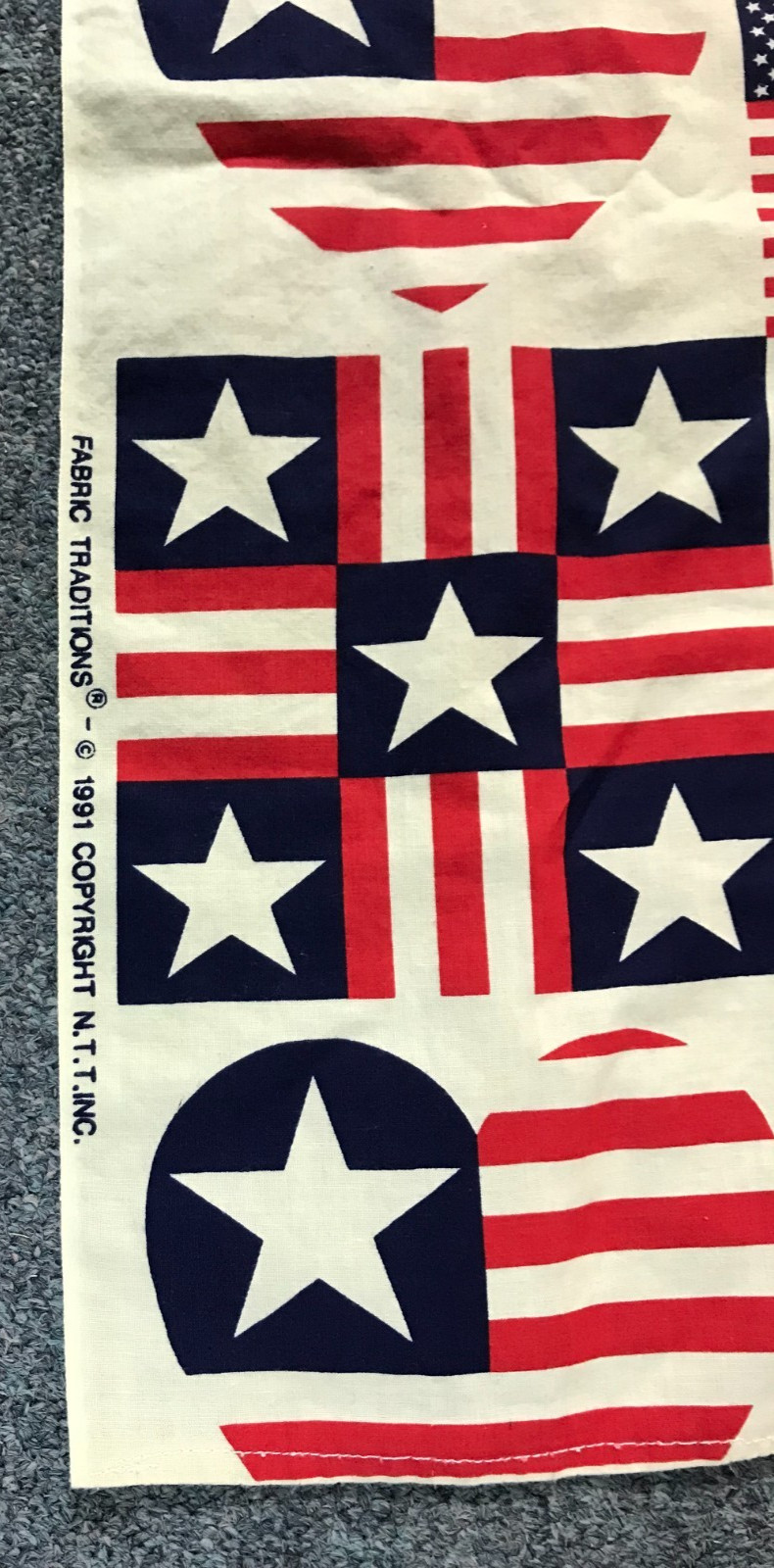 как выглядит 1991 Fabric Traditions American Flags Hearts Stars Stripes Cotton 44" x 44" фото