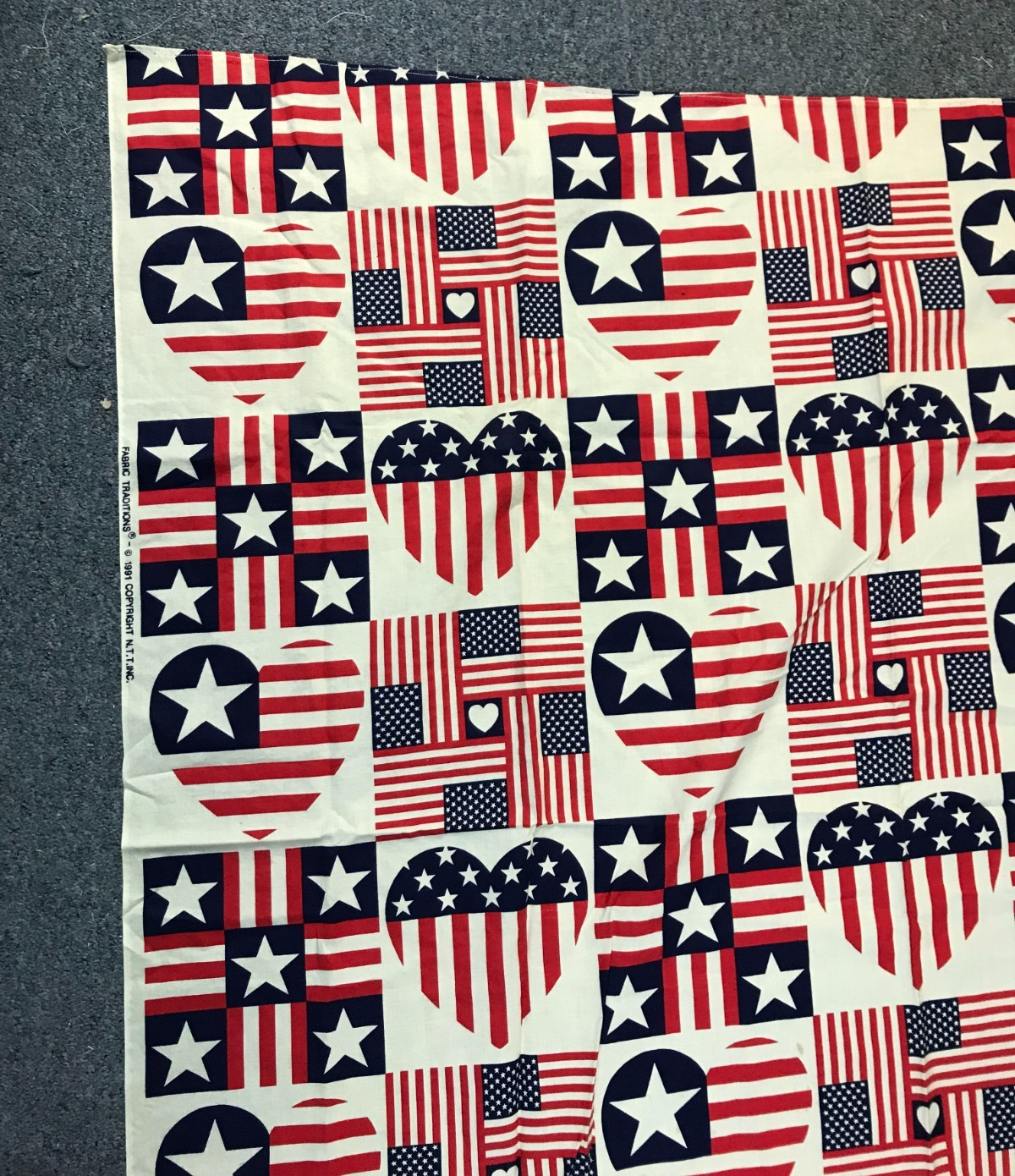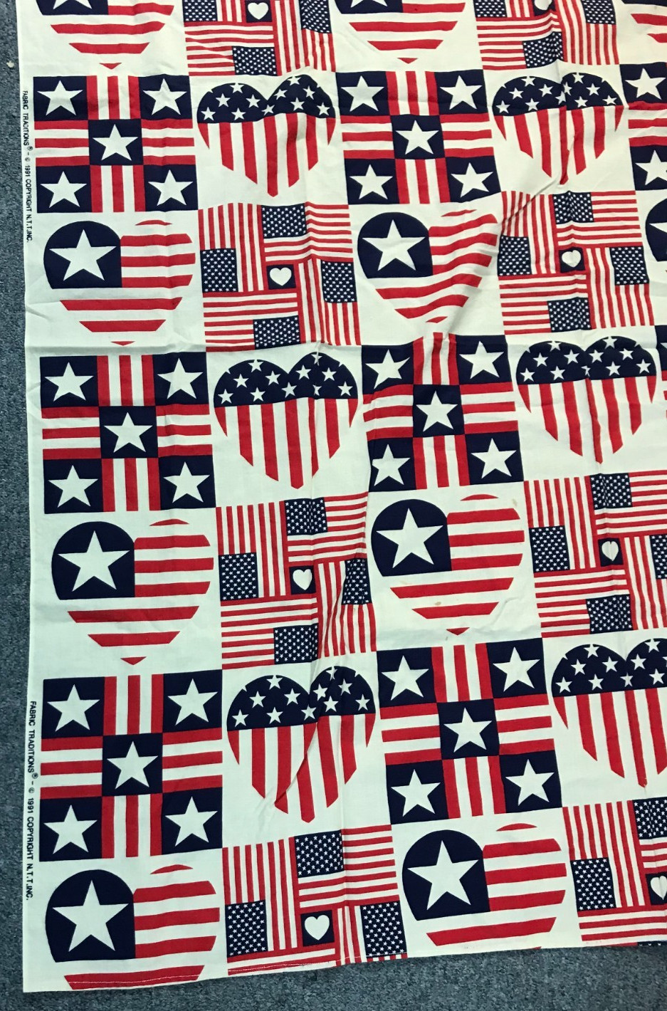 1991 Fabric Traditions American Flags Hearts Stars Stripes Cotton 44 x 44
