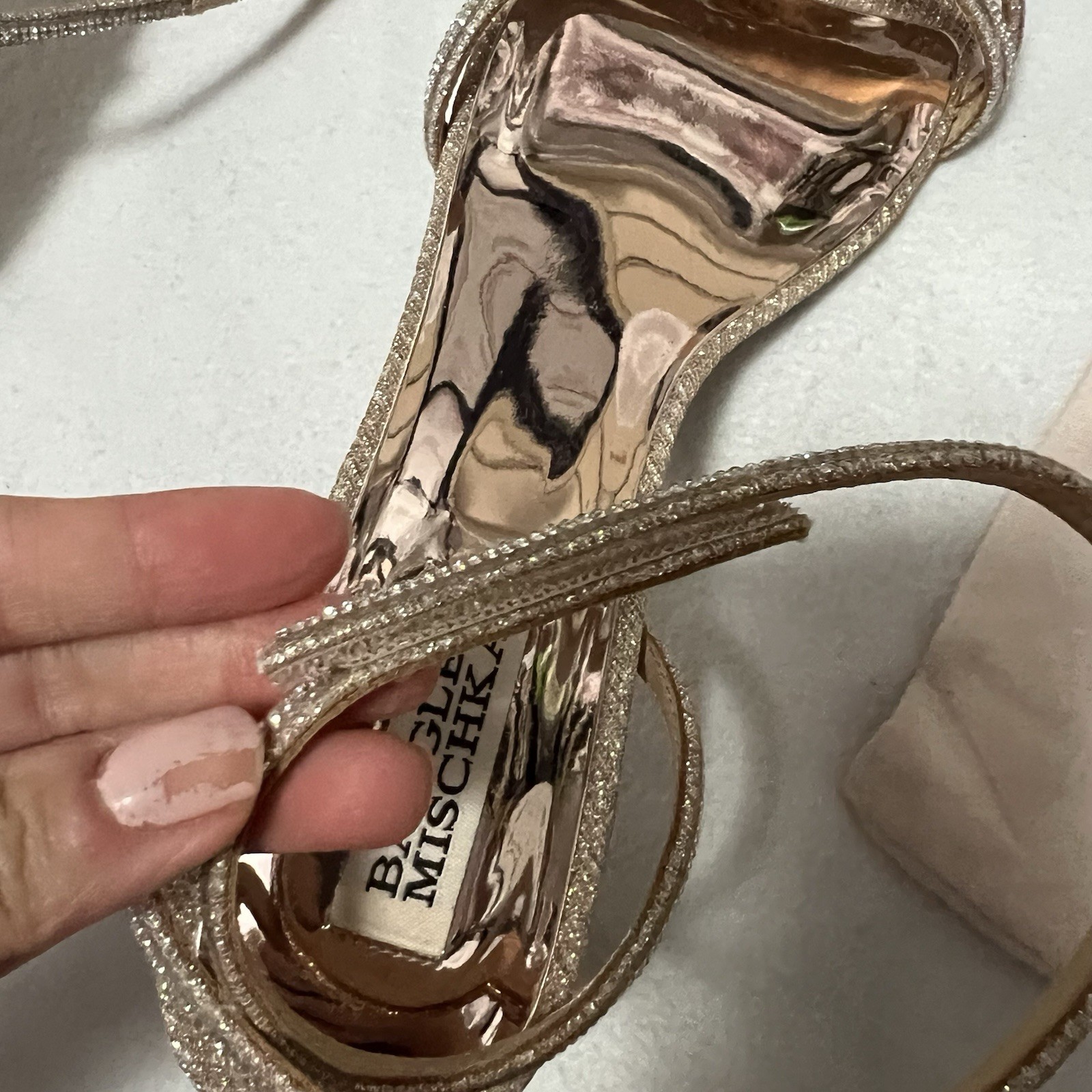 как выглядит badgley mischka ultra sandals pale gold bridal Jan Sale фото