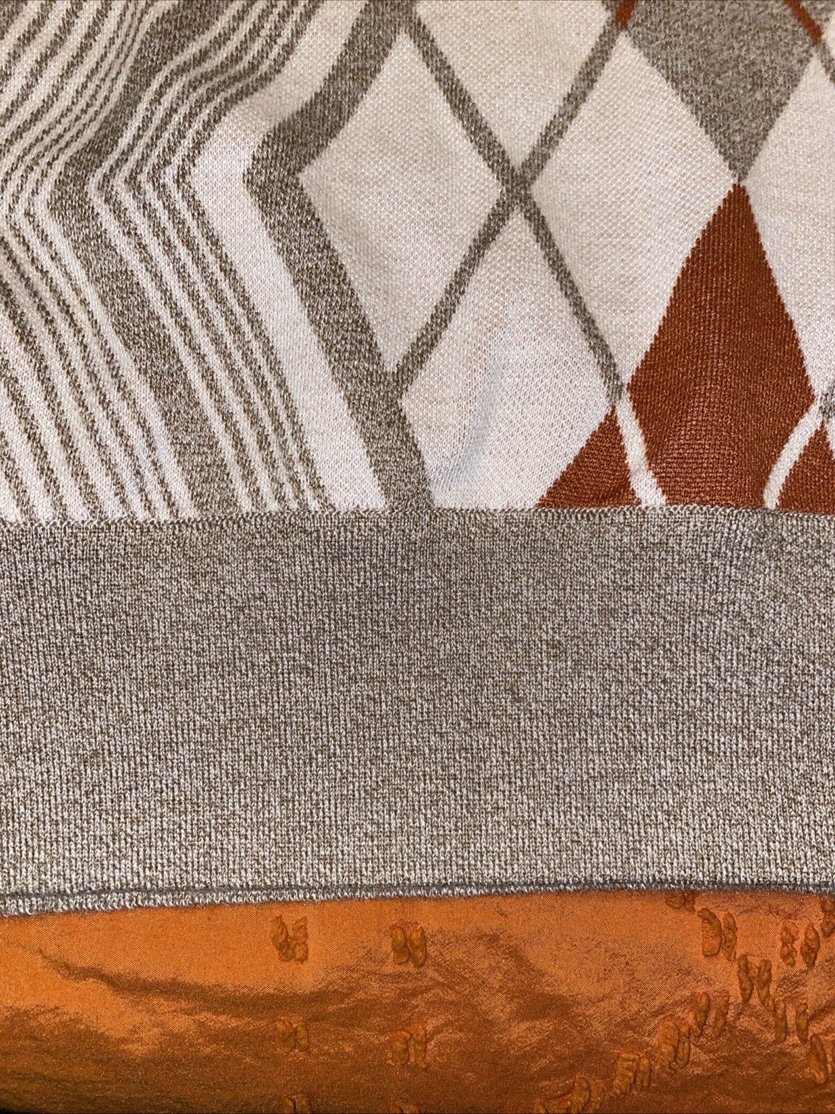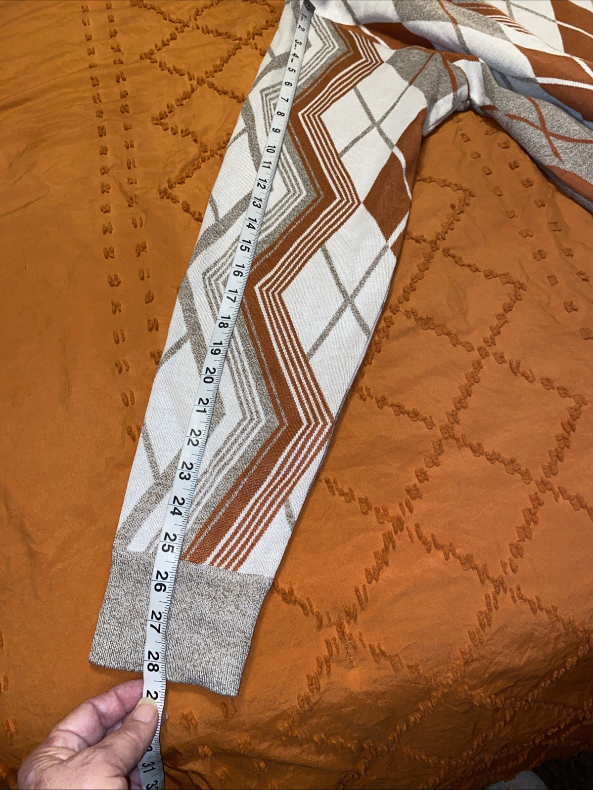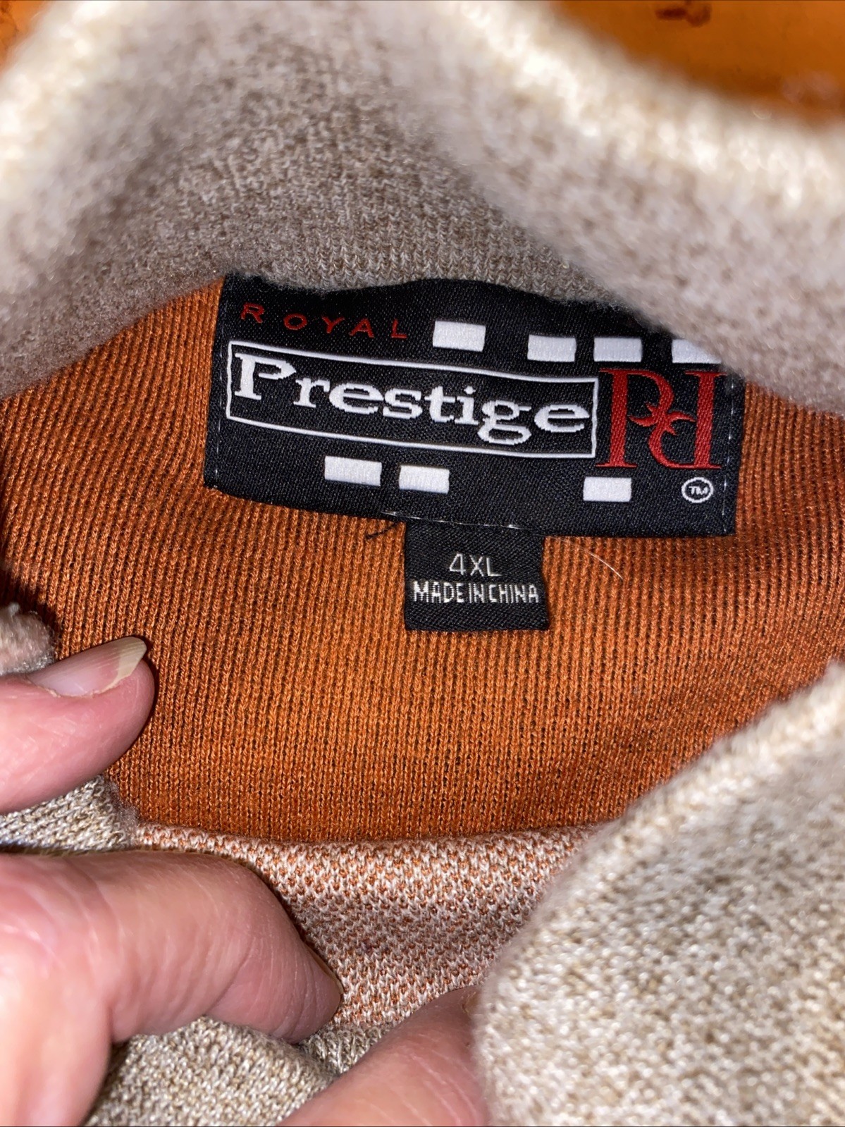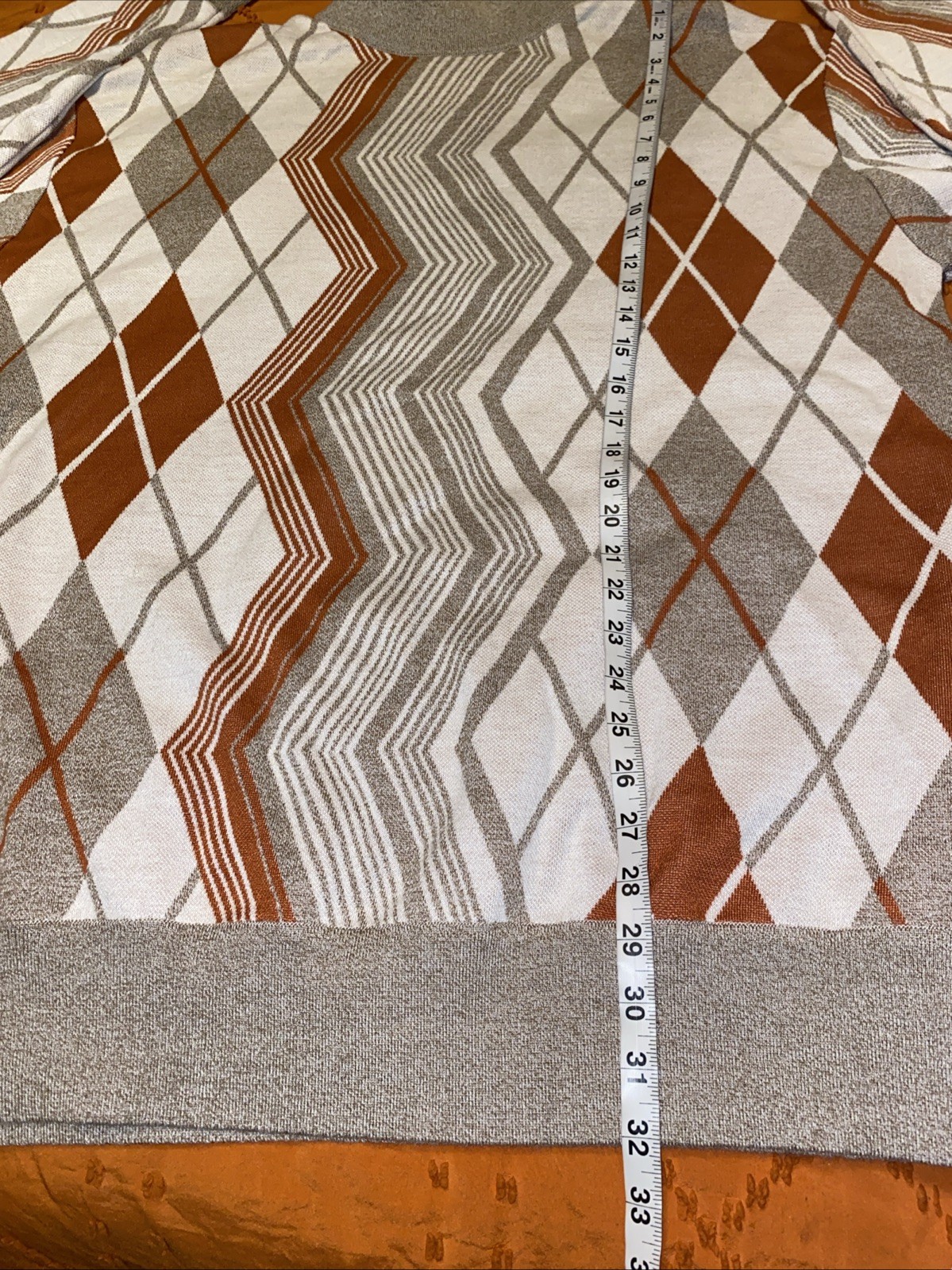 Royal Prestige Argiyle Orange Lt Brown Knit Mock Neck Long Sleeve 4XL Sweater