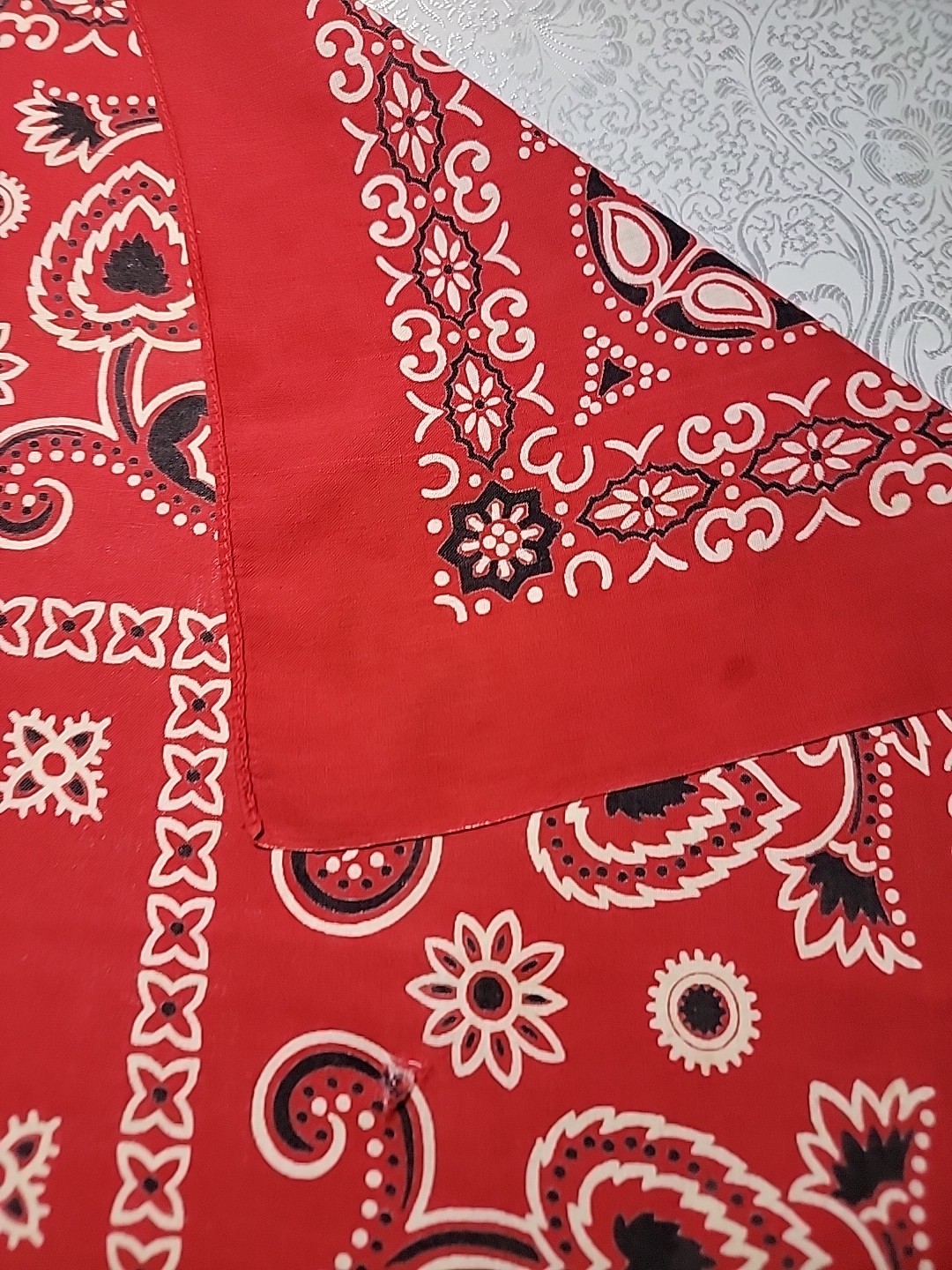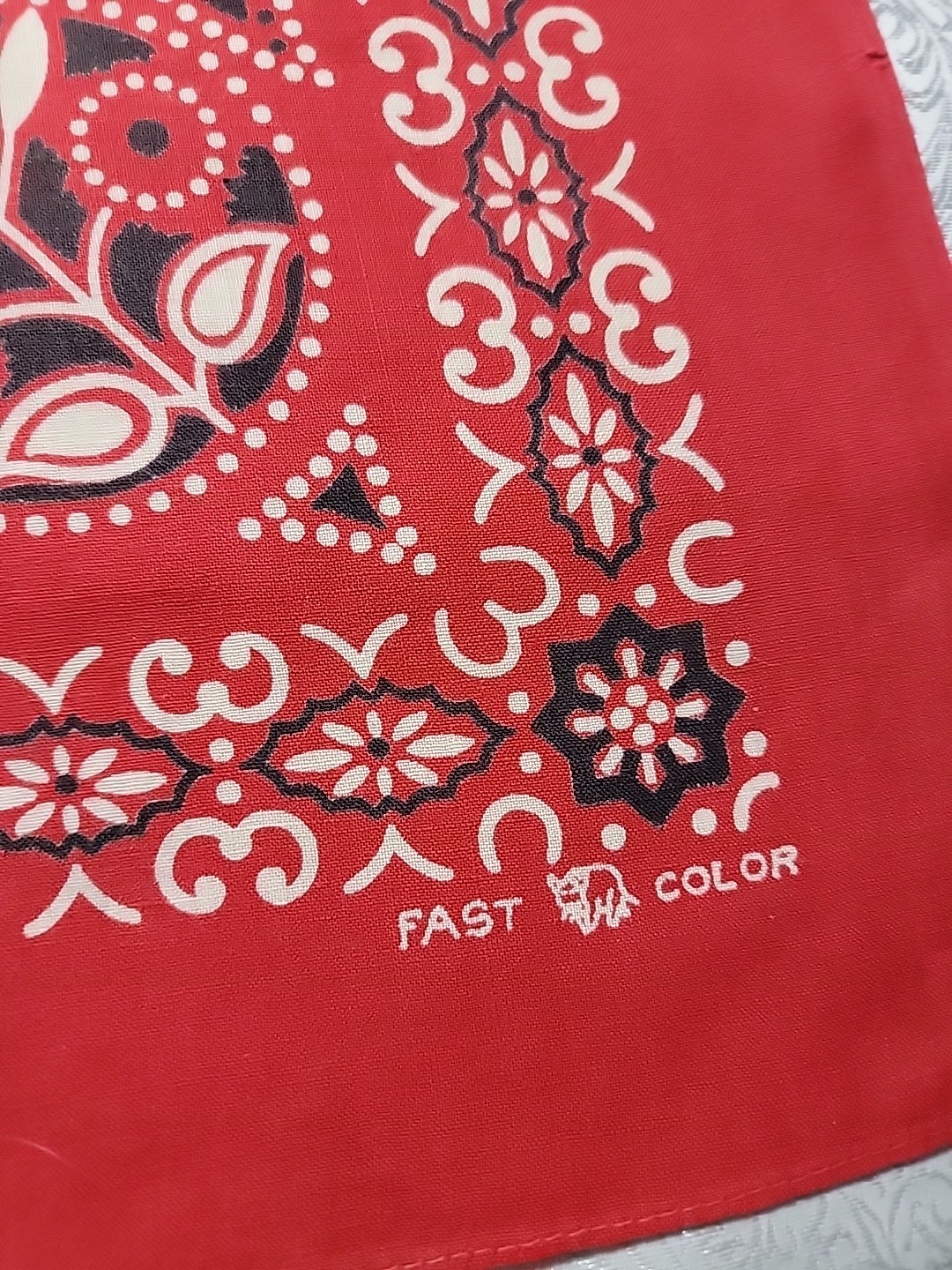 Vintage Fast Color Bandana Red Floral Elephant Trunk Down