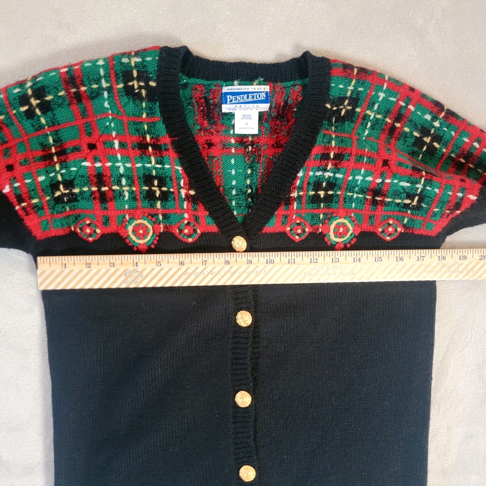 Vintage Pendleton 100 Virgin Wool Plaid Cardigan Sweater Small Petite Button Up