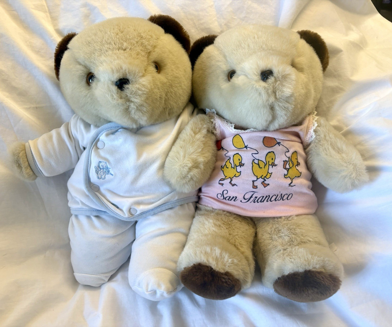 как выглядит Vintage Eden Toys Plush Twin Teddy Bear Set 16 Light Brown 1980s/1990s фото