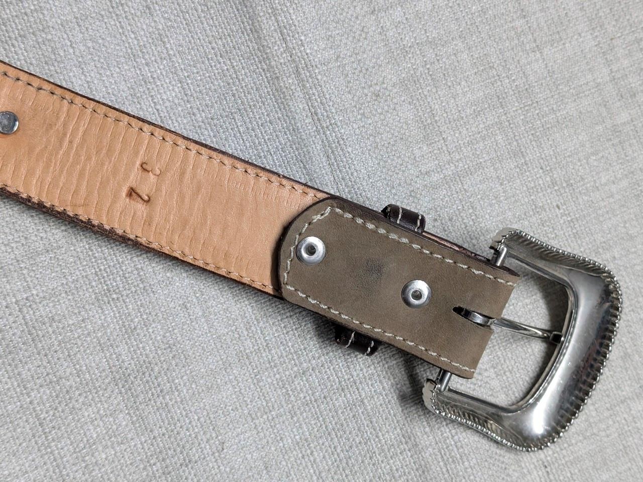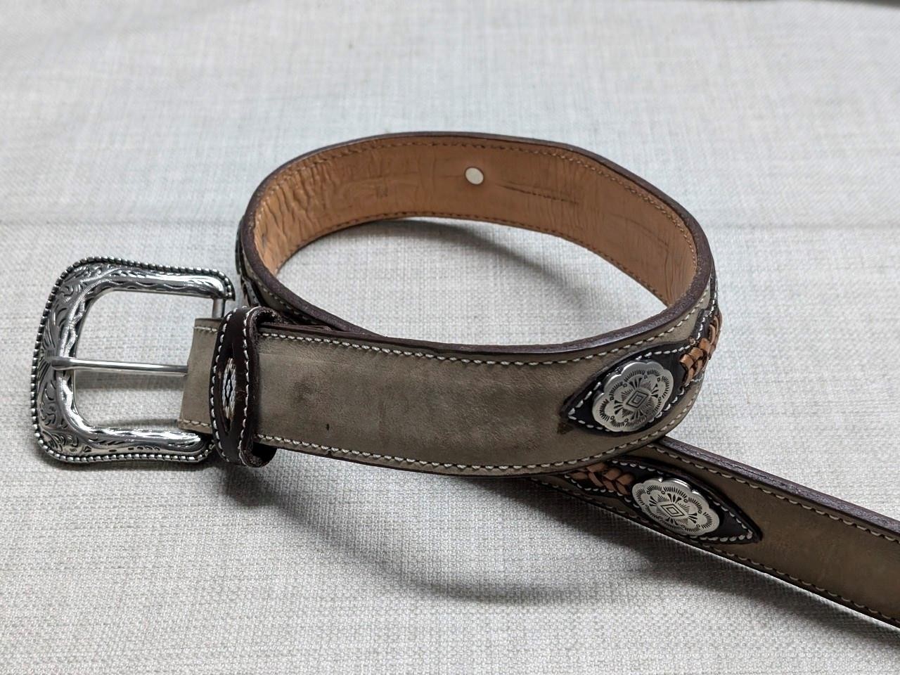 как выглядит vintage WESTERN buckle belt NATIVE AMERICAN leather 32 concho TOOLED wrangler фото