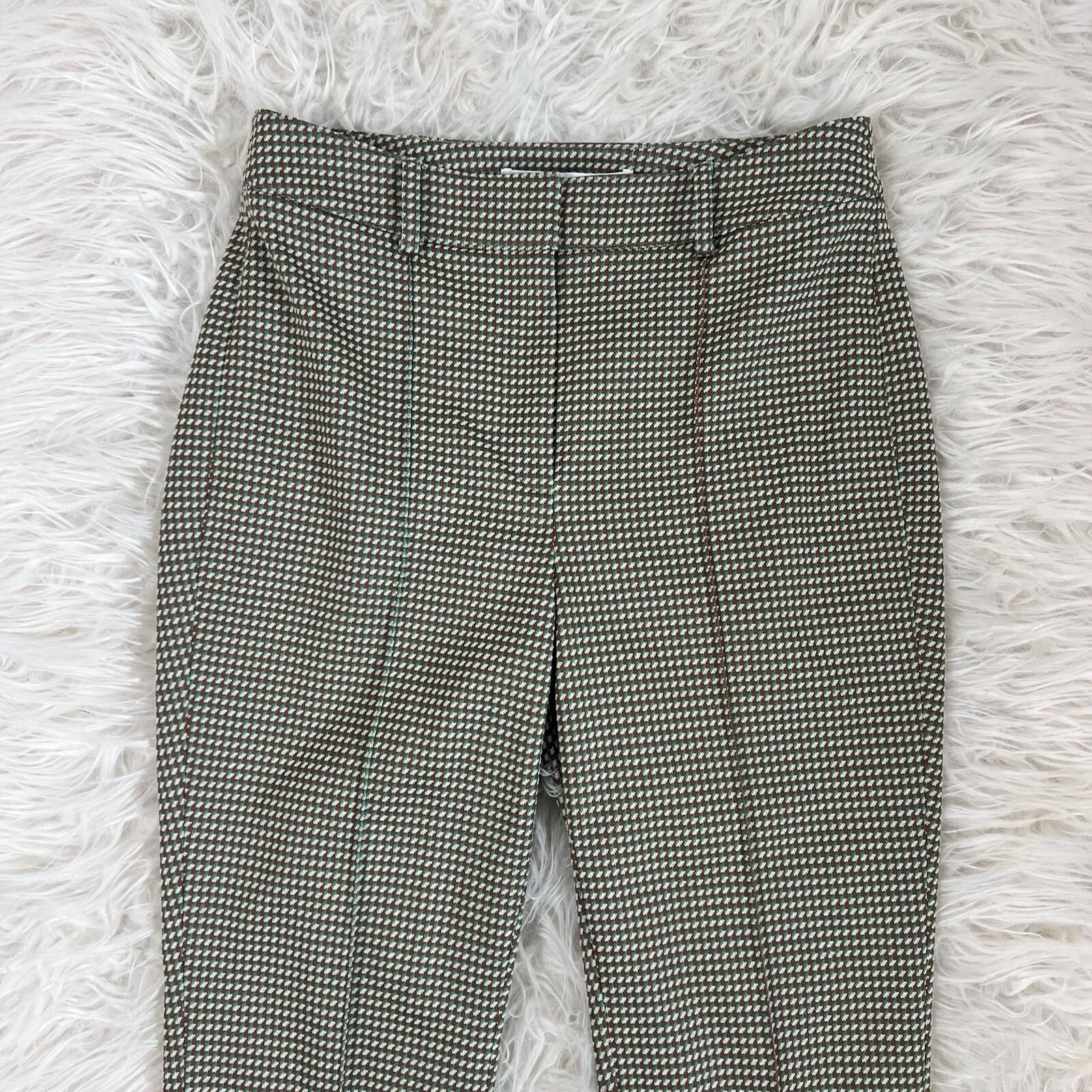 как выглядит Veronica Beard Size 4 Gani Cropped Jacquard Flared Jersey Knit Pants Green NWOT фото