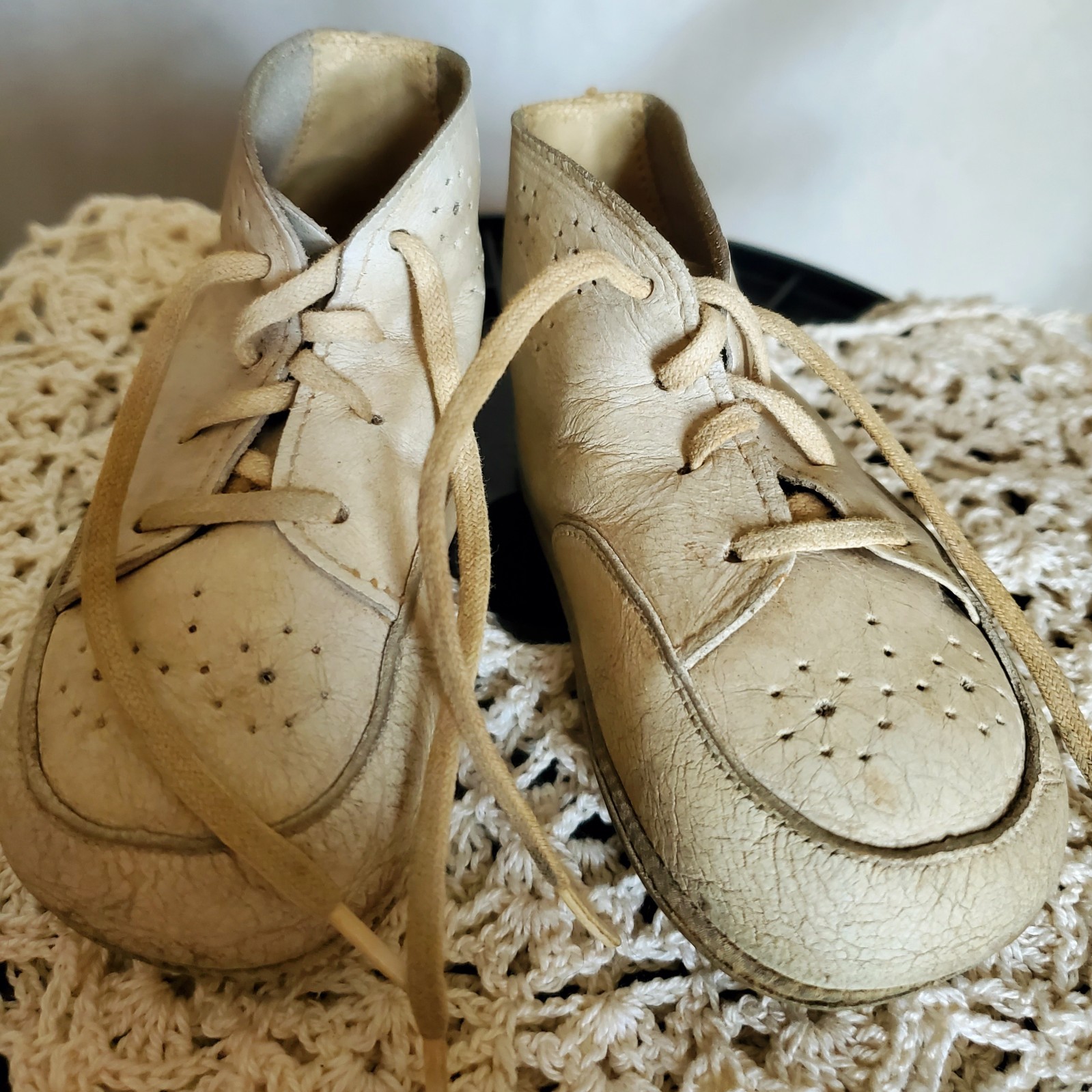 как выглядит Vintage 1930s Wee Walker Washable Leather Baby Shoes фото
