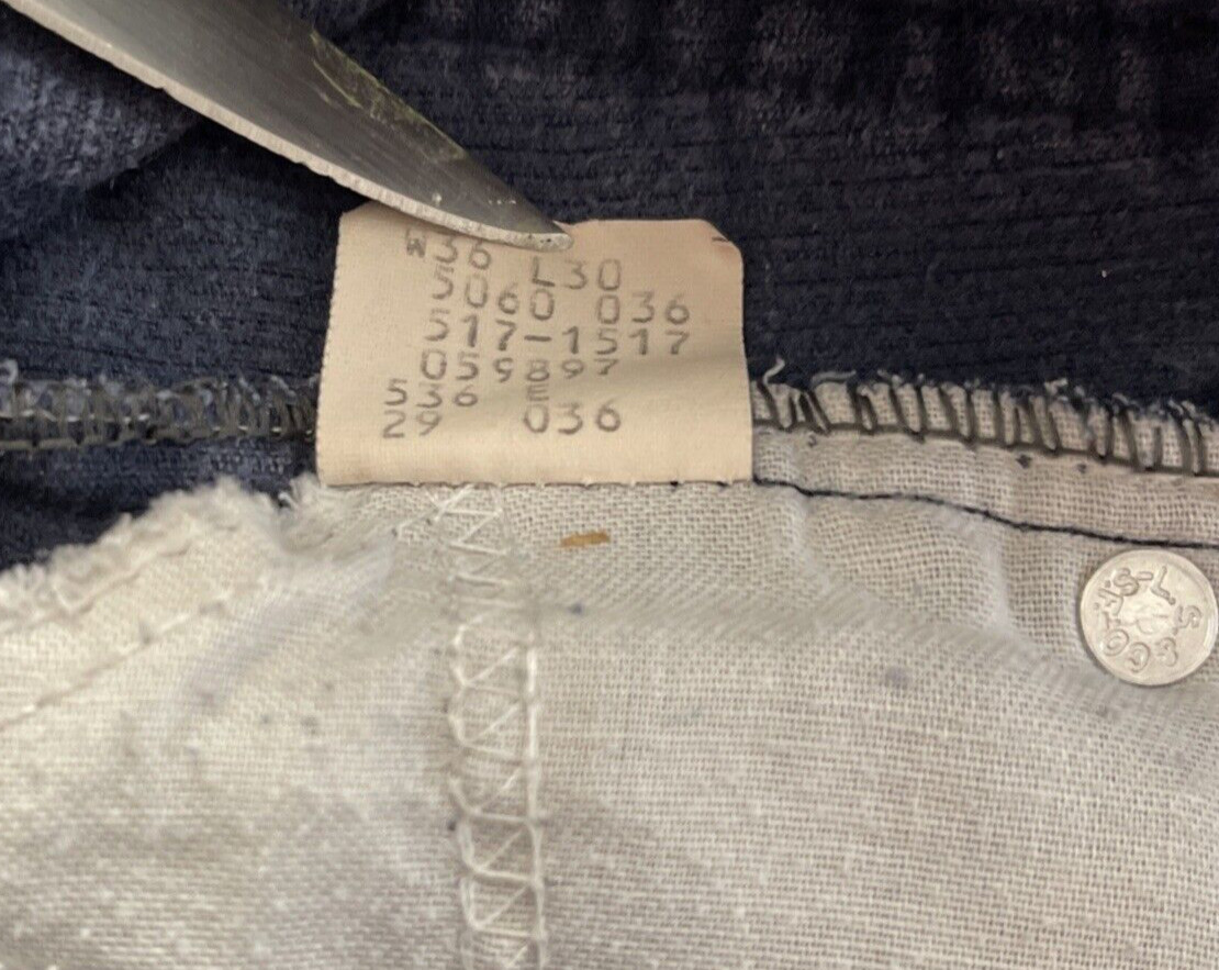 Levi s 517 Corduroy Blue Pants USA Made 517-1517 Men Size W34 L29-Holes