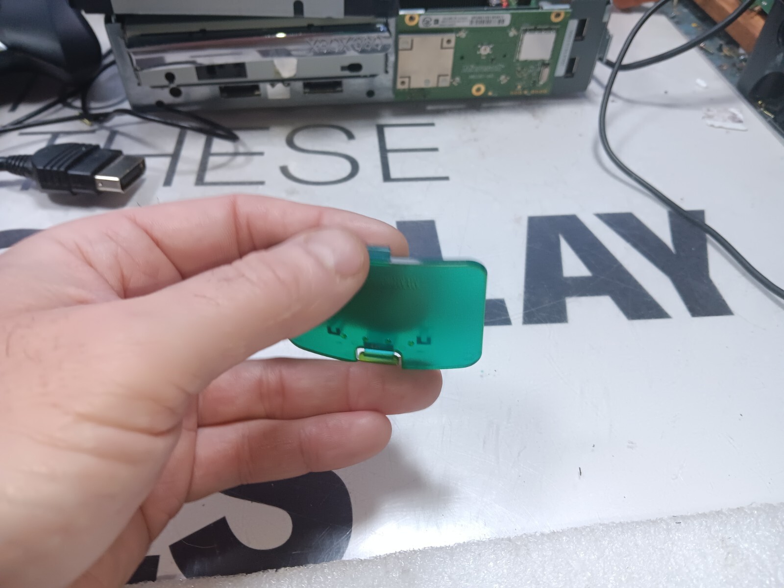 Nintendo N64 Original Clear GREENISH Blue Jumper Pak Memory Cover ONLY-READ ALL