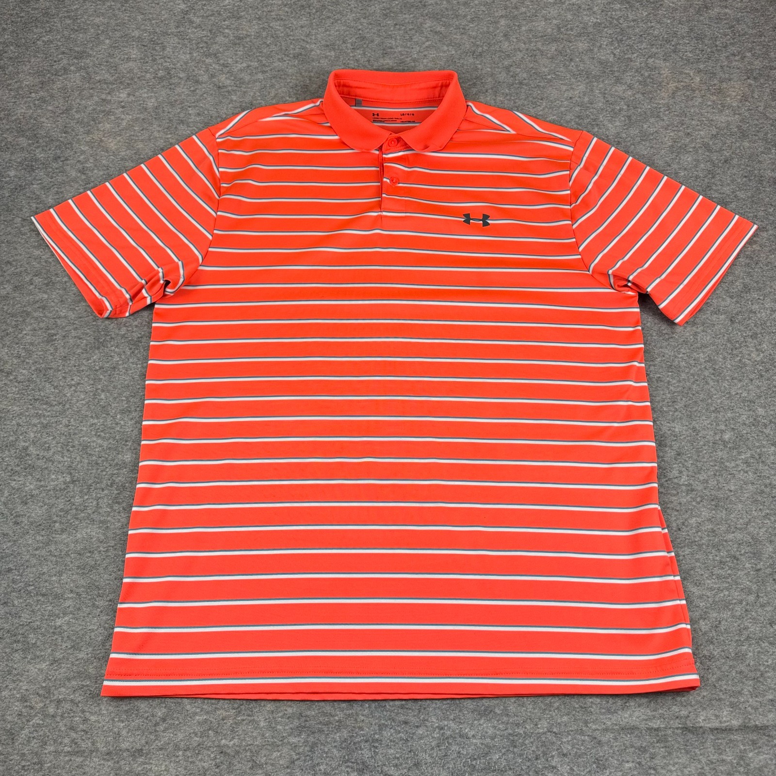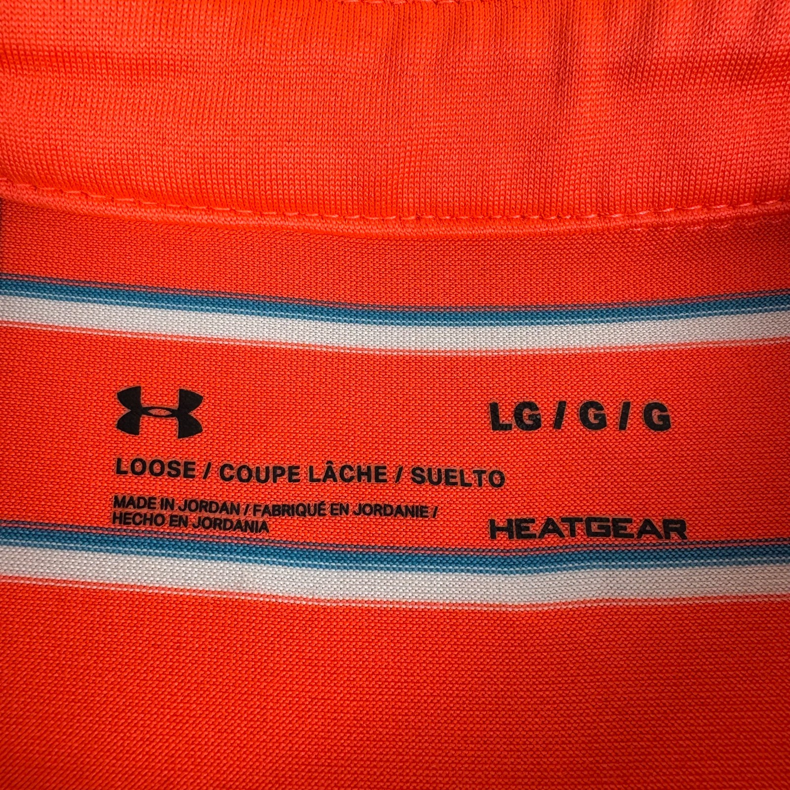 Under Armour HeatGear Golf Polo Shirt Loose Striped Orange Mens Large L