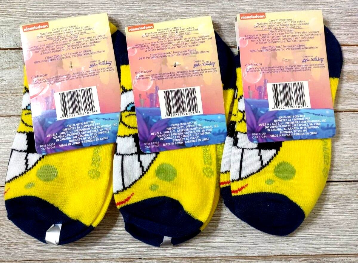 SpongeBob Socks 3 Pair Boys Size 6-8.5