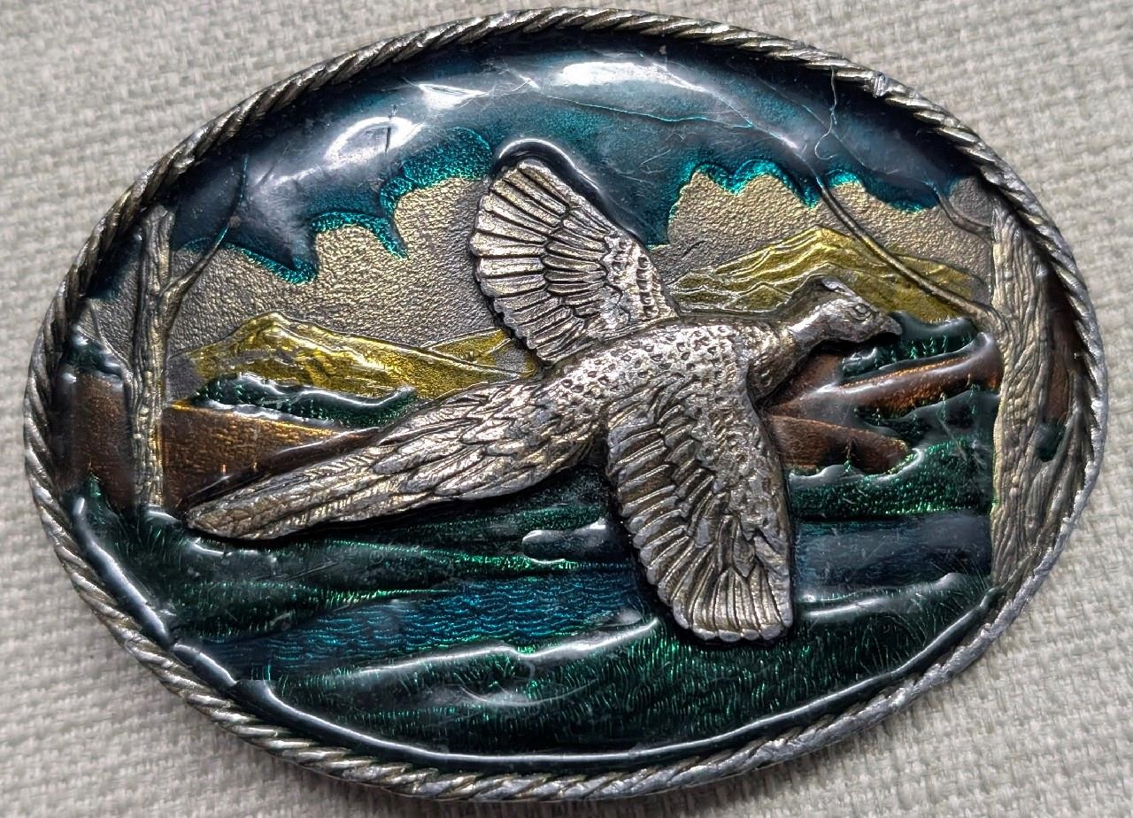 как выглядит vintage SOLID BRASS belt buckle PHEASANT grouse quail WESTERN hunting COWBOY фото