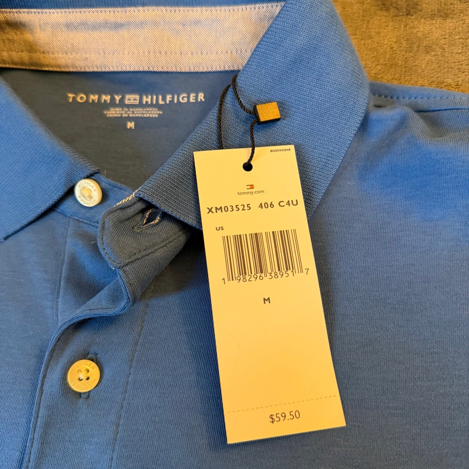 как выглядит Tommy Hilfiger Blue Short Sleeve Polo Shirt Mens Medium Preppy Workwear NWT фото