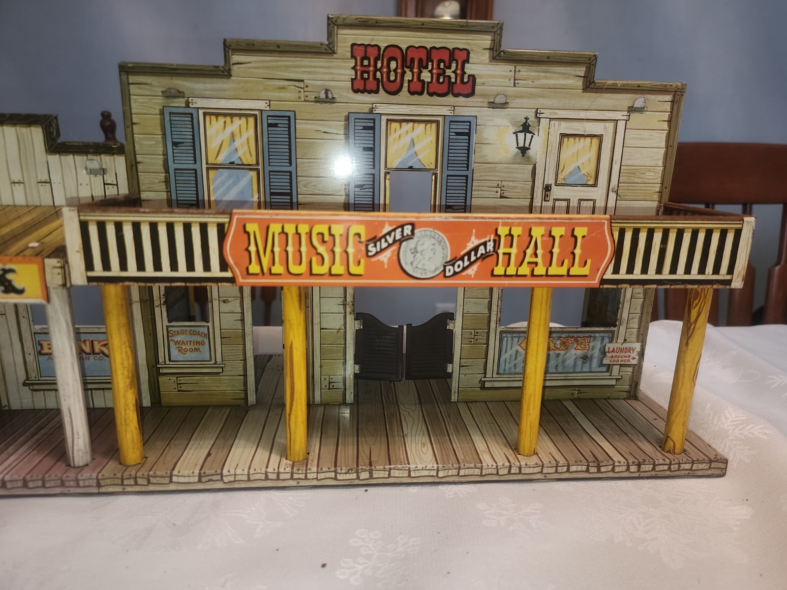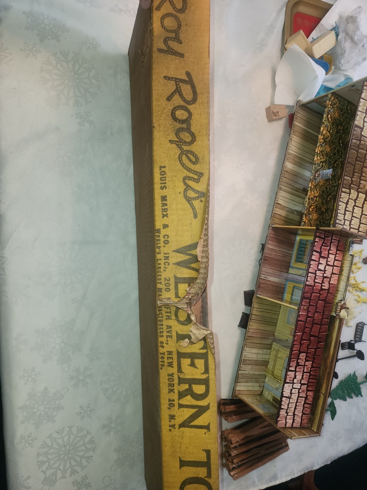 Vintage 1950s Marx Roy Rodgers Tin Town Western Playset 4258 w/Box Cowboys Wagon