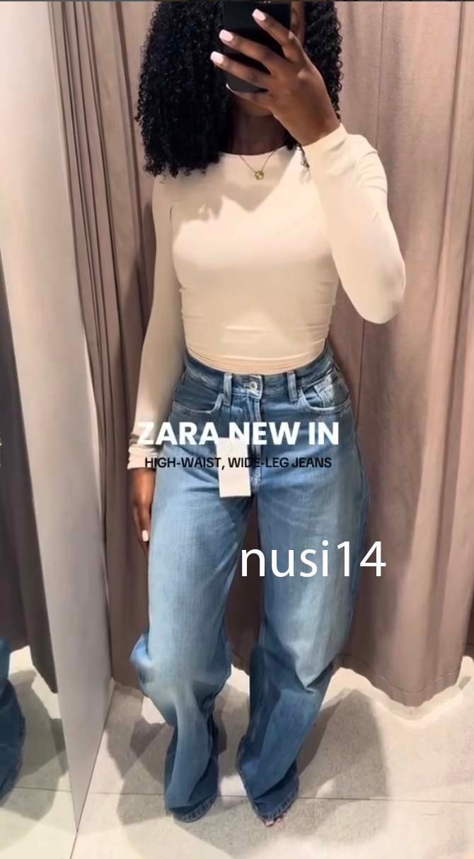 как выглядит ZARA NEW WOMAN TRF WIDE LEG HIGH-WAISTED JEANS FAUX LEATHER POCKETS 5252/011/400 фото