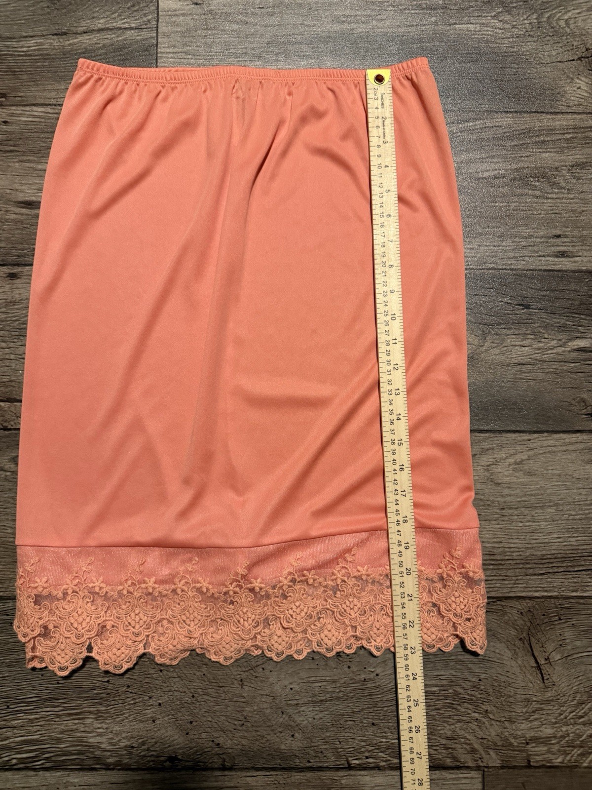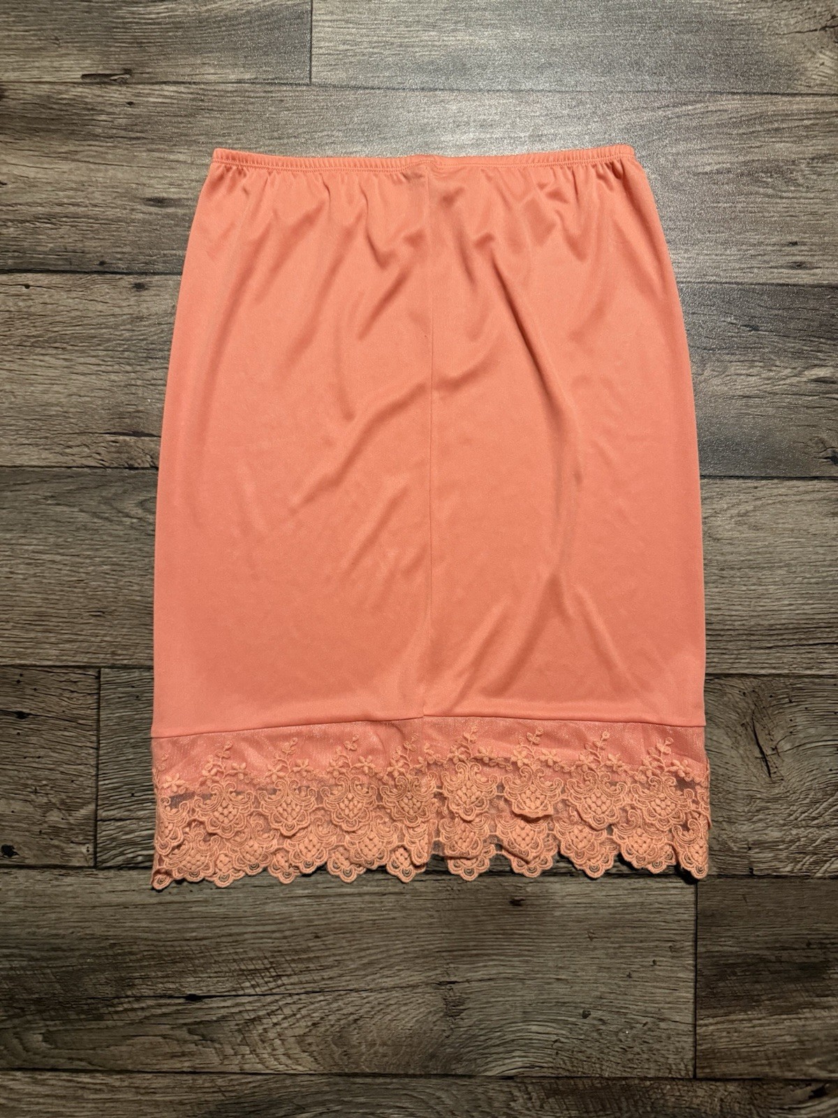 как выглядит Final Touch Coral Pink Lace Skirt Extender Slip size Medium Made in USA фото