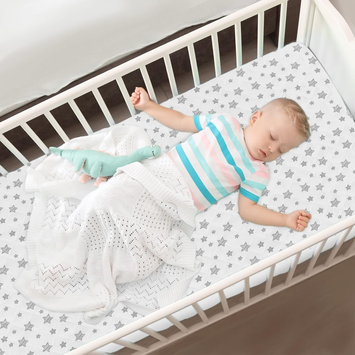 Crib Mattress Protector Waterproof, Quilted Crib Mattress Pad Cover 52 x 28 Ex