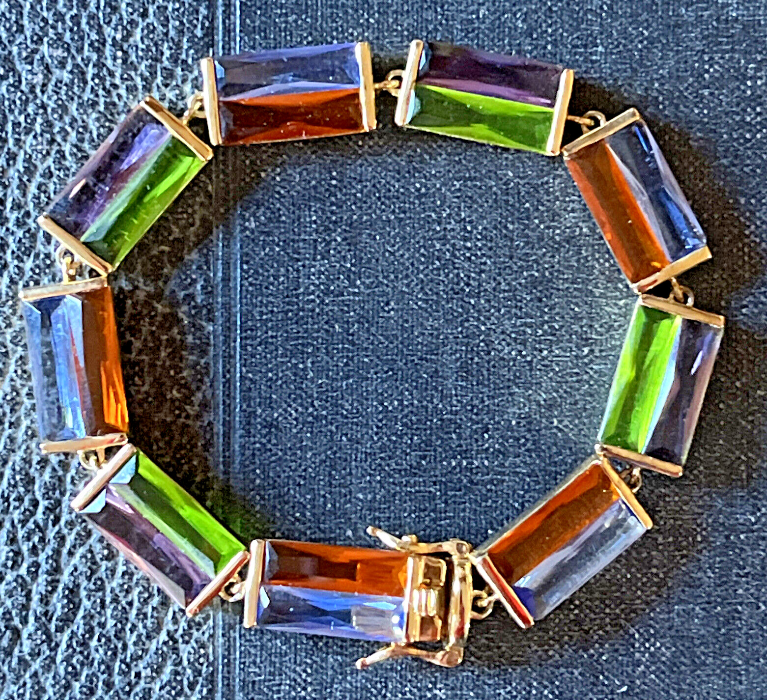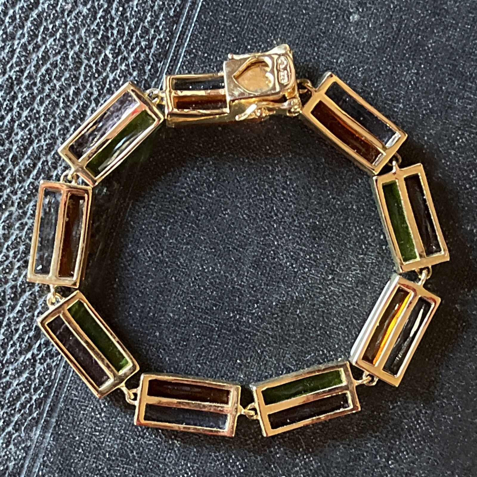как выглядит Rainbow Horizontal Stripe 925 Vermeil Ring Bracelet Set CA Canada фото