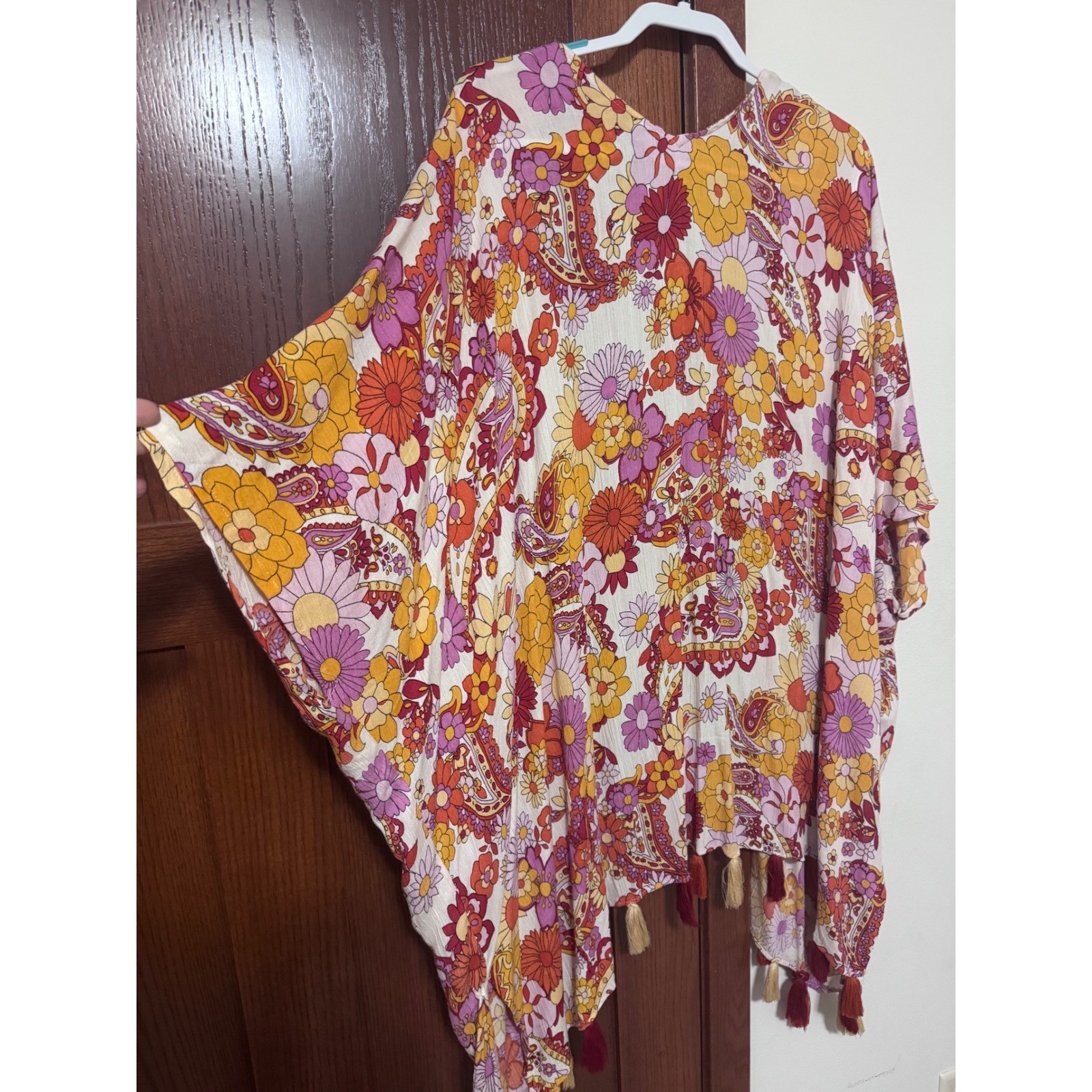 как выглядит ANGIE Womens M Bohemian Floral Paisley Kimono Duster Tassels Lightweight фото