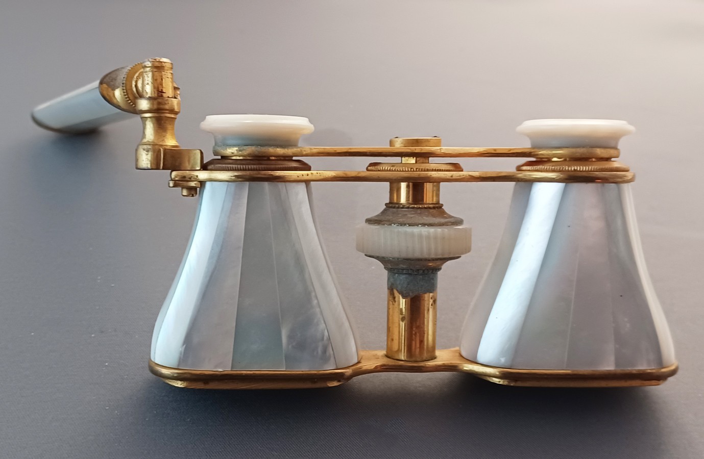 как выглядит Antique Mother Of Pearl MOP Brass Opera Glasses w Soft Leather Case фото