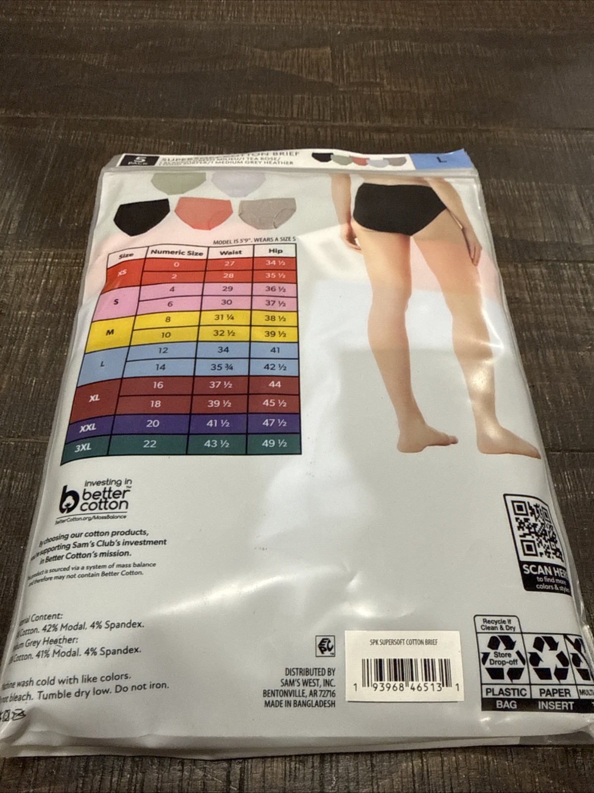как выглядит Members Mark Womens 5-Pack Super-Soft Cotton Brief Large фото