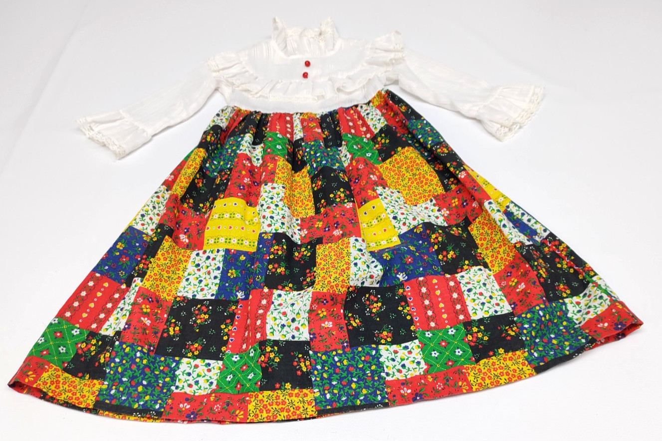 Vtg Sears Toddler Dress LS Patchwork Skirt Lace Trim Size 2 Homestead Prairie