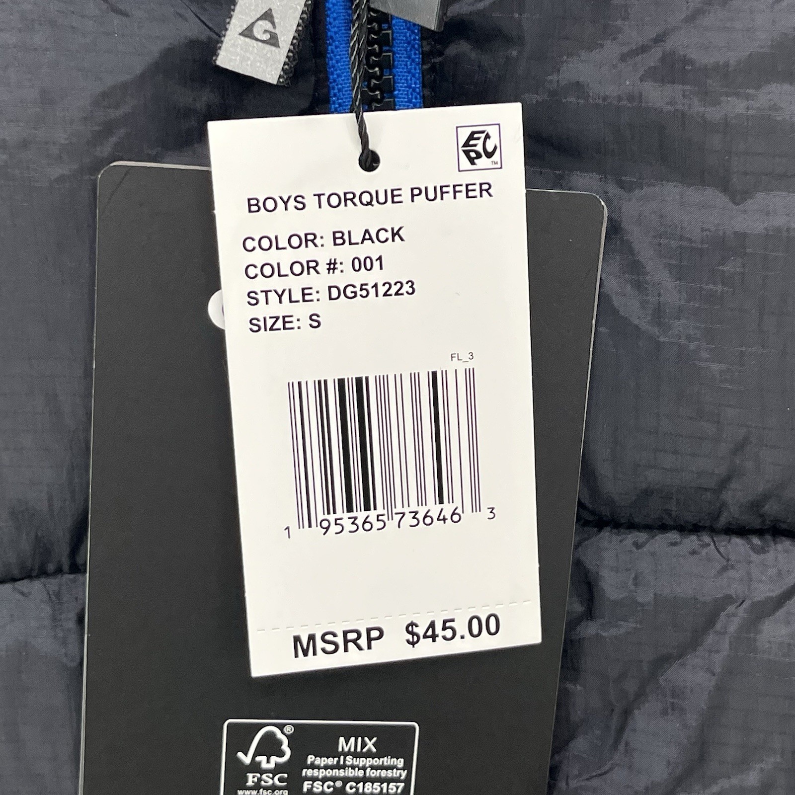 Gerry Boys Torque Puffer Black Size Small DG51223 Winter Jacket Coat
