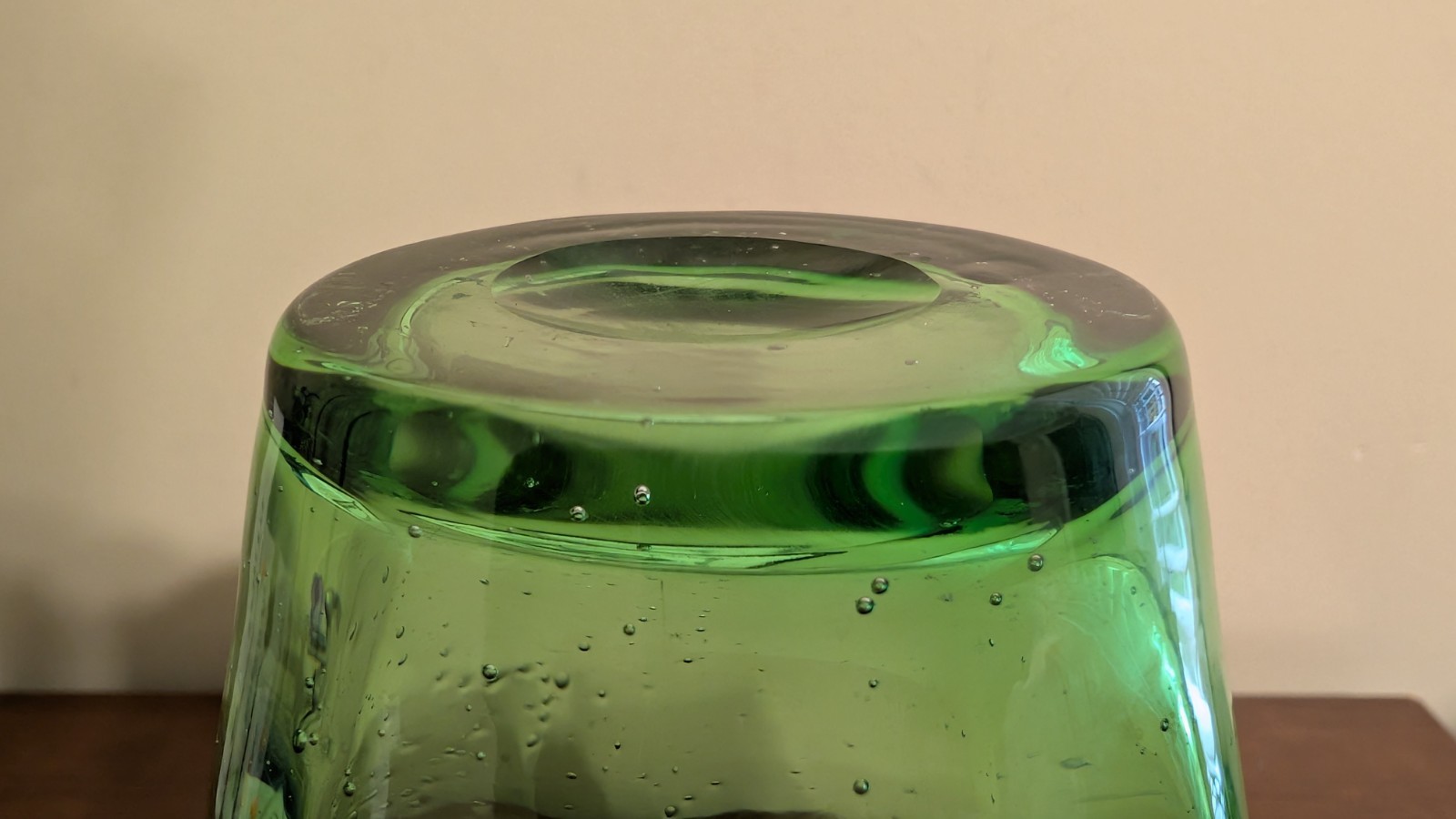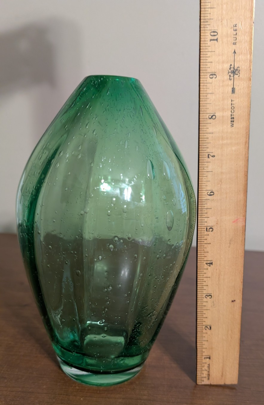 как выглядит Vintage Hand-Blown Bubble Art Glass Flower Vase Green Murano 9" tall фото