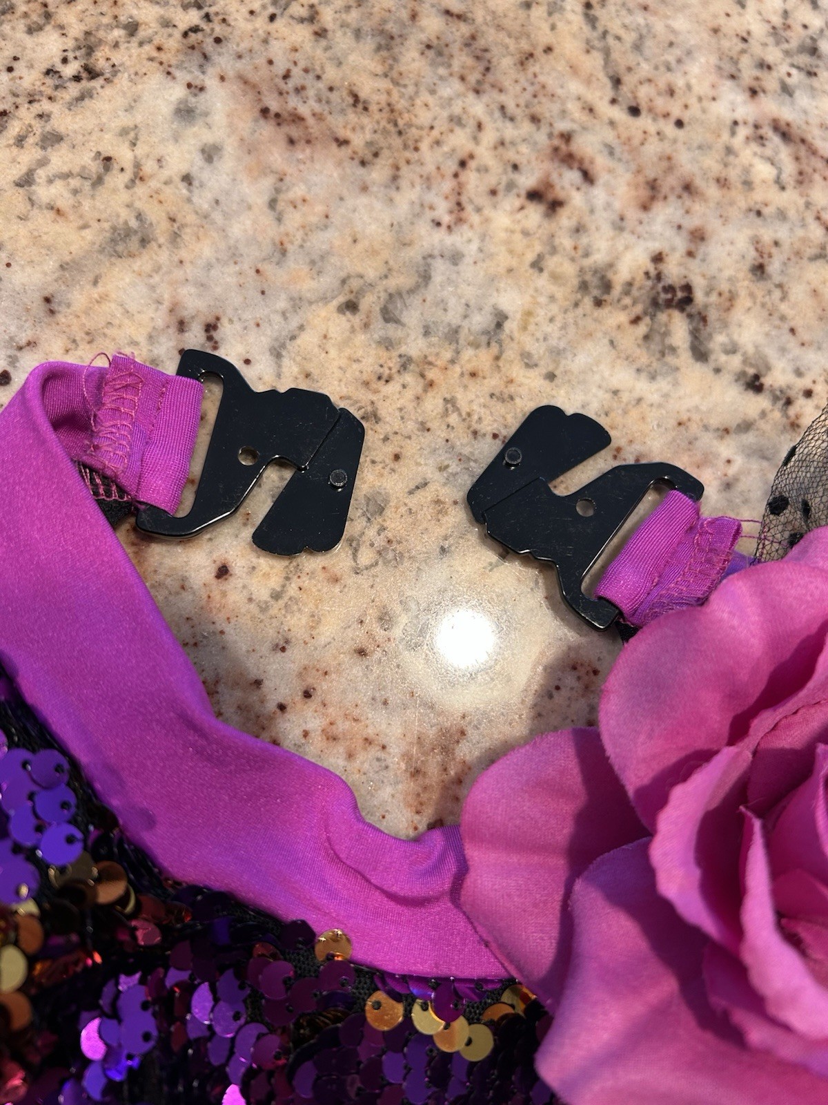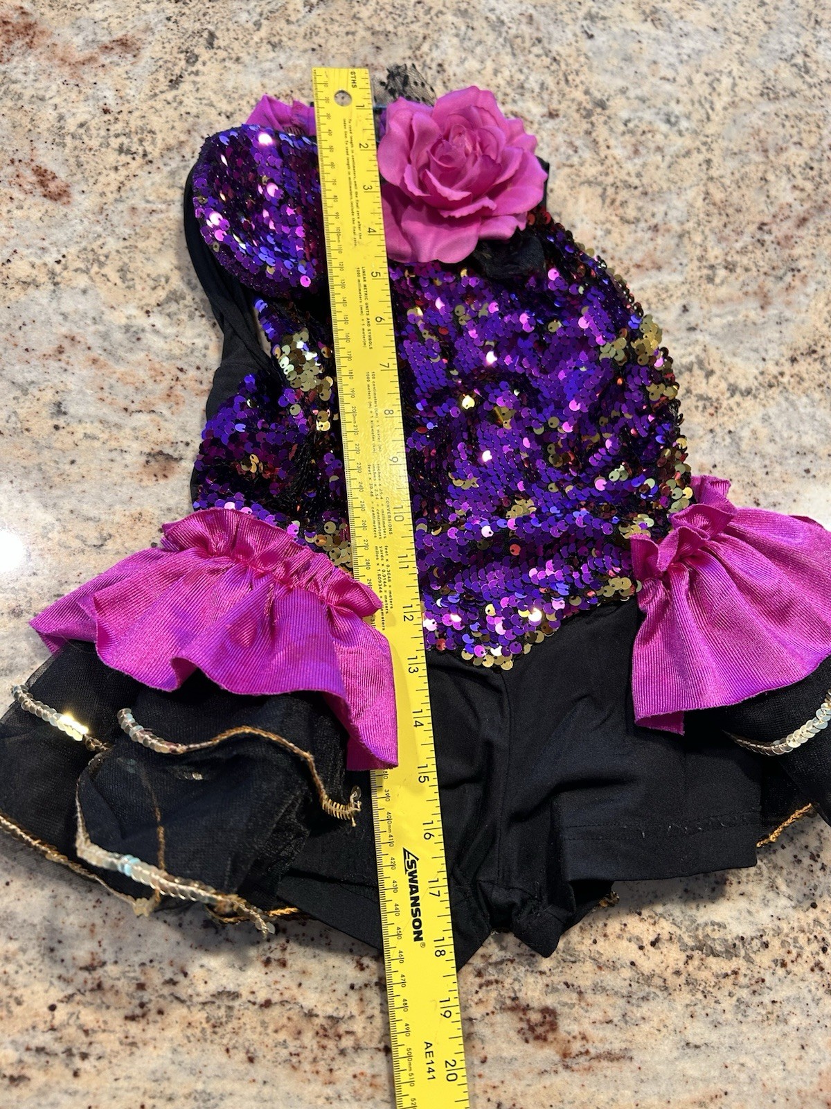 как выглядит Costume Gallery Dance Costume Purple Sparkling Sequins Hat Flower Small Child фото